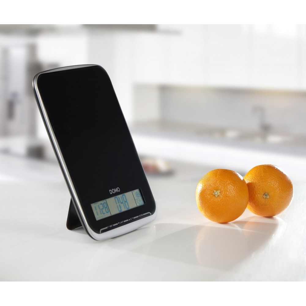 DOMO Kuchenna waga szklana do 10 kg - czarna DO9105WWaga kuchenna ze szklaną powierzchnią, z dokładnością do 1 g i maksymalnej wadze do 10 kg