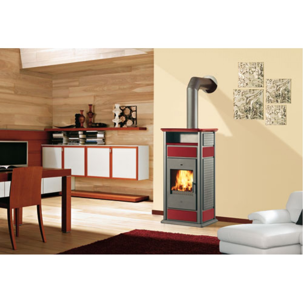 EDILKAMIN Warm /cs Piec wolnostojący 14kW czerwony 624750Z płaszczem wodnym i wężownicą oraz nadstawką