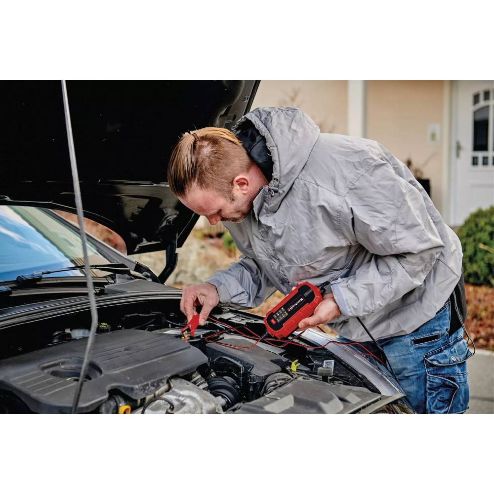 CE-BC 2 M PROSTOWNIK marki Einhell to inteligentne urządzenie z wielostopniowym cyklem ładowania i monitorowaniem przez kontroler mikroprocesorowy, nadaje się do wszystkich standardowych akumulatorów samochodowych 12 V o pojemności 3-60 Ah. Funkcja ładowania podtrzymującego zmniejsza obciążenie akumulatora i wydłuża jego żywotność, szczególnie w przypadku pojazdów sezonowych. Ochrona przed przeładowaniem, zwarciem i zamianą biegunów oraz ochrona przed pyłem i strumieniami wody zapewnia niezawodną ochronę urządzenia. Ładowarka ma również w pełni izolowane zaciski biegunowe.