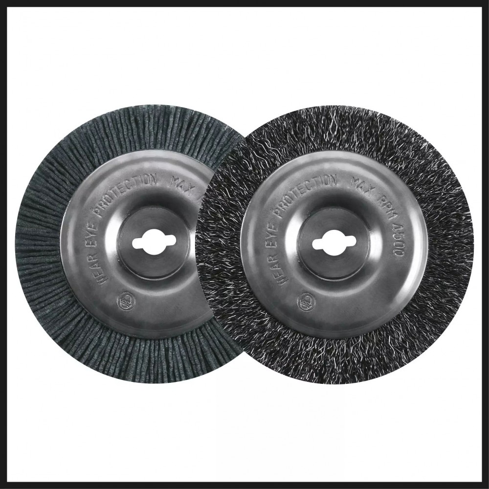 Szczotka nylonowa i stalowa są częścią zestawu. Nylon jest idealny do podłóg drewnianych, a stal skutecznie czyści powierzchnie kamienne.