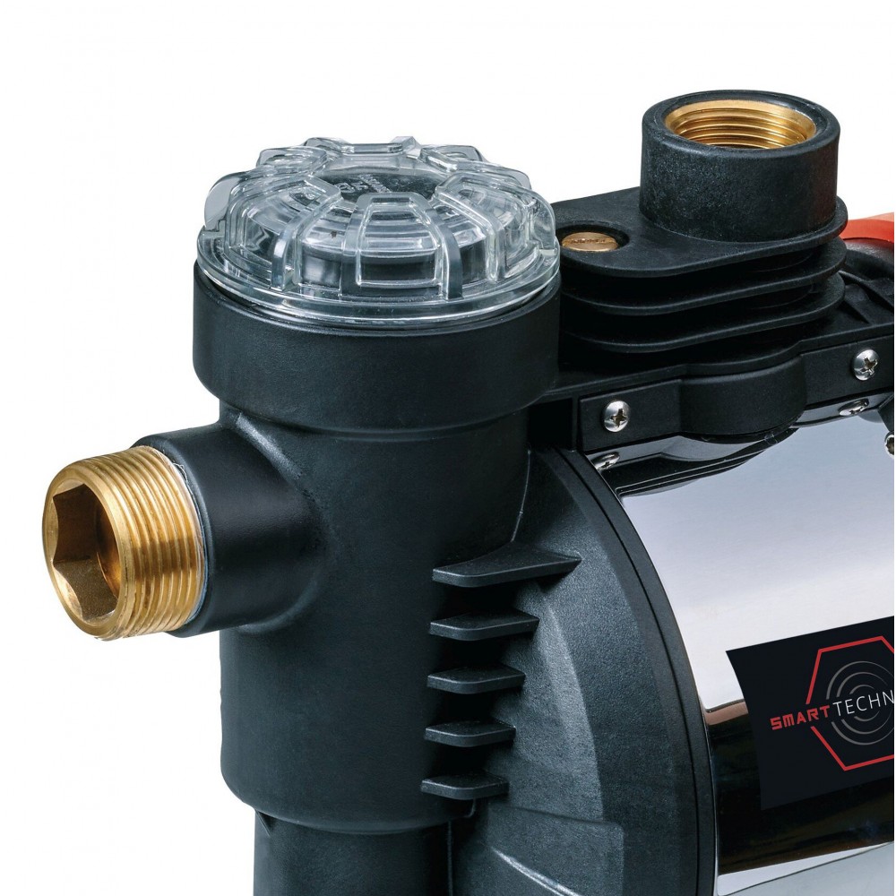 Automatyczna pompa domowa GE-AW 1144 SMART jest wyposażona w wiele wysokiej jakości i praktycznych funkcji. Duży korek napełniający i osobny korek spustowy ułatwiają napełnianie i opróżnianie pompy, aby była gotowa do użycia lub zabezpieczona przed mrozem zimą. Zawór zwrotny zapobiega cofaniu się wody i spadkowi poziomu wody, a filtr wstępny chroni pompę przed zabrudzeniami.