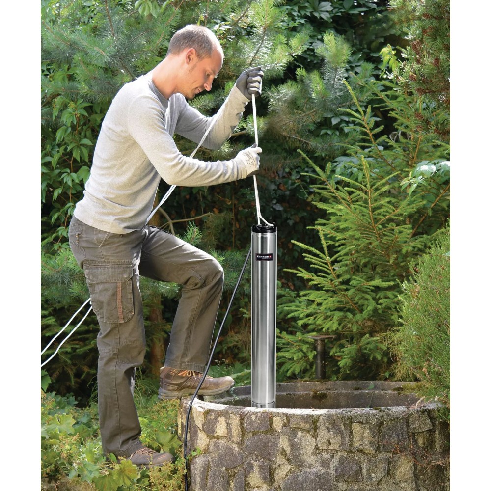 Hlbinné čerpadlo Einhell GE-DW 1100 N-A s automatickou funkciou umožňuje automatické zapnutie zariadenia vtedy, keď je požadovaný odber vody, a pri jeho prerušení sa automaticky opäť vypne. Pomocou 8-stupňového systému obežných kolies vytvára čerpadlo potrebný tlak na dopravu čistej vody aj z nižšie položených zásobníkov vody a studní až do výšky 55 m. Vďaka automatickej funkcii a vysokému dopravnému tlaku je čerpadlo ideálne pre záhradné zavlažovacie systémy, ako aj na zásobovanie domácnosti vodou, najmä na splachovanie toaliet, práčky alebo umývanie automobilov. Kompaktný a štíhly dizajn umožňuje použitie aj v úzkych potrubiach. Maximálna hĺbka ponoru je 19 metrov a 22-metrový napájací kábel spolu s priloženým závesným lanom umožňujú flexibilné použitie čerpadla. Vďaka výkonnému motoru s príkonom 1 100 W dokáže čerpadlo dopraviť až 6 000 litrov za hodinu. Ponorné tlakové čerpadlo je nielen vizuálne pôsobivé, ale bolo navrhnuté aj ako mimoriadne robustné zariadenie s dôležitými bezpečnostnými prvkami. Telo čerpadla a sitko na zachytávanie nečistôt z nehrdzavejúcej ocele, tlaková prípojka s vložkou z nehrdzavejúcej ocele a vysokokvalitná mechanická upchávka tvoria základ dlhej životnosti. Integrovaná ochrana proti chodu nasucho chráni čerpadlo pred poškodením pri prerušení dodávky vody. Ľahko prístupná hadicová prípojka s veľkosťou 33,3 mm (1" vnútorný závit) sa nachádza na hornej strane čerpadla. Integrovaný spätný ventil zabraňuje spätnému prúdeniu vody.