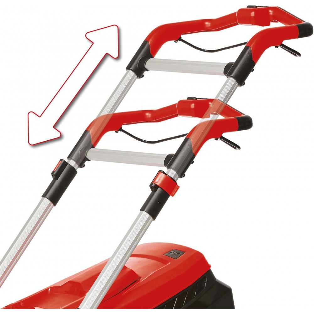 Dzięki 6-stopniowej centralnej regulacji wysokości koszenia w zakresie od 25 do 75 mm oraz szerokości koszenia do 38 cm można dostosować pracę kosiarki do indywidualnych potrzeb. Zintegrowany grzebień do trawy umożliwia koszenie aż przy krawędziach. Kosiarka wyposażona jest w szerokie koła chroniące trawnik. Ergonomiczny uchwyt zmniejsza zmęczenie podczas pracy. Teleskopową, regulowaną rączkę można dopasować do wzrostu użytkownika, a po pracy złożyć, aby ułatwić przechowywanie. Zintegrowany uchwyt ułatwia przenoszenie. Aluminiowa konstrukcja zapewnia lekkość i wytrzymałość. Kosz na trawę ma pojemność 45 litrów i wyposażony jest we wskaźnik napełnienia. Produkt dostarczany jest z akumulatorami, szybką ładowarką oraz praktyczną wkładką do mulczowania.