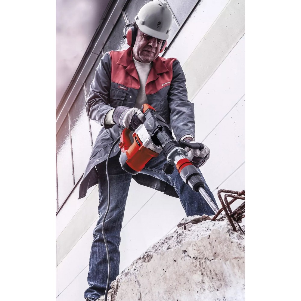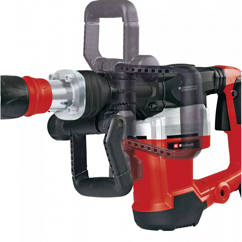 Młot wyburzeniowy Einhell TE-DH 32 posiada mocny silnik 1500 W, który napędza dłuto energią 32 J. Urządzenie sprawdzi się podczas prac wyburzeniowych, zrywania oraz kruszenia twardych materiałów, takich jak kamień, beton czy cegła. Młot ma solidną konstrukcję przystosowaną do wymagającej, ciągłej pracy oraz uchwyt SDS max, który umożliwia szybką wymianę dłuta bez użycia narzędzi. Gumowy kabel o długości 4 m zapewnia maksymalną mobilność. Dodatkowe wibracje są tłumione dzięki głównej rękojeści z amortyzacją oraz miękkim powierzchniom uchwytu na rękojeści dodatkowej, którą można regulować pionowo o 180° i poziomo o 360°. Automatycznie wyłączające się szczotki węglowe zapobiegają przeciążeniu i uszkodzeniu urządzenia. Młot jest gotowy do pracy dzięki dołączonemu spiczastemu dłutu, a wszystko jest pakowane w praktycznej walizce E-Box.
