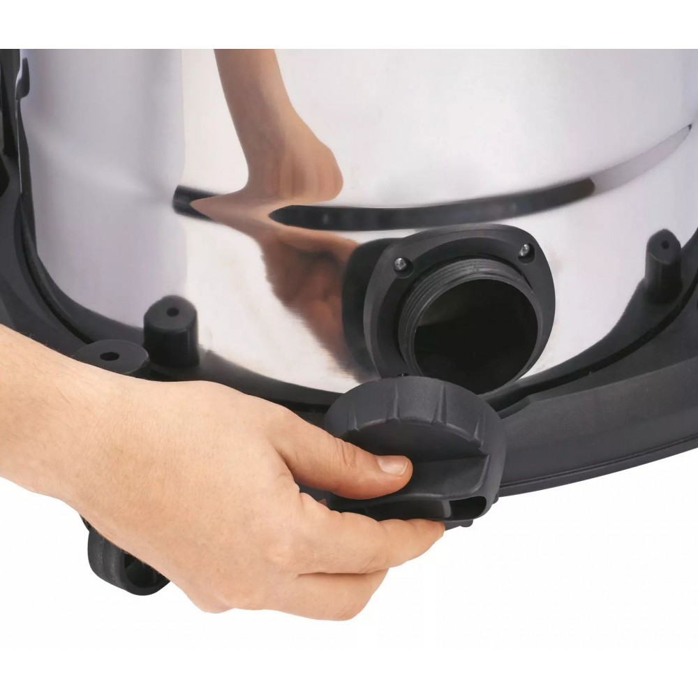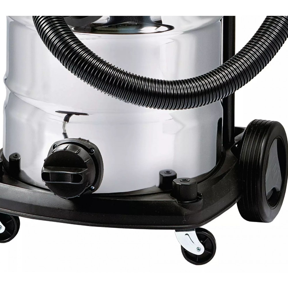 W przeciwieństwie do zwykłego odkurzacza i mopa, odkurzacz na mokro/sucho Einhell TE-VC 2230 SA czyści głęboko i dokładnie. Sprawia to, że odkurzacz na mokro/sucho jest doskonałym uzupełnieniem standardowych domowych urządzeń czyszczących do ciężkich, uporczywych i głębokich zabrudzeń. Odkurzacz do pracy na mokro/sucho jest również praktycznym pomocnikiem dla ambitnych majsterkowiczów podczas sprzątania na placu budowy, w warsztacie lub w garażu. Wnętrze wszystkich typów pojazdów silnikowych może być czyszczone aż do tekstylnych końcówek za pomocą odkurzacza na mokro / sucho, w tym siedzeń i podsufitki, a także dywanów i boazerii. Odkurzacz Einhell do pracy na mokro/sucho został zaprojektowany jako odkurzacz ECO zapewniający wysoką moc ssania przy niskim zużyciu energii i wykorzystuje 1150 watów. Nierdzewny zbiornik ze stali nierdzewnej ma pojemność 30 litrów, co umożliwia długotrwałe użytkowanie. Regulator powietrza jest łatwo dostępny na uchwycie. Zintegrowane przyłącze wydmuchu umożliwia przedmuchiwanie trudno dostępnych miejsc. Duże koła i kółka zapewniają łatwy transport i mobilność. W obudowie znajduje się automatyczne gniazdo do podłączenia elektronarzędzi. Znajduje się tam również praktyczny uchwyt na akcesoria, w którym można schludnie przechowywać dołączone akcesoria. Przewód zasilający o długości 500 cm można nawinąć na uchwyt wózka. Odkurzacz do pracy na mokro/sucho jest łatwy w czyszczeniu dzięki korkowi spustowemu do odprowadzania zassanej wody. Zakres dostawy obejmuje rurę teleskopową wykonaną ze stali nierdzewnej (? 36 mm), bardzo długi wąż ssący z tworzywa sztucznego (? 36 mm) o długości 3 metrów, dużą dyszę kombinowaną do dywanów i gładkich podłóg, dyszę szczelinową i do tapicerki, a także filtr piankowy, filtr plisowany i papierowy worek na zanieczyszczenia.
