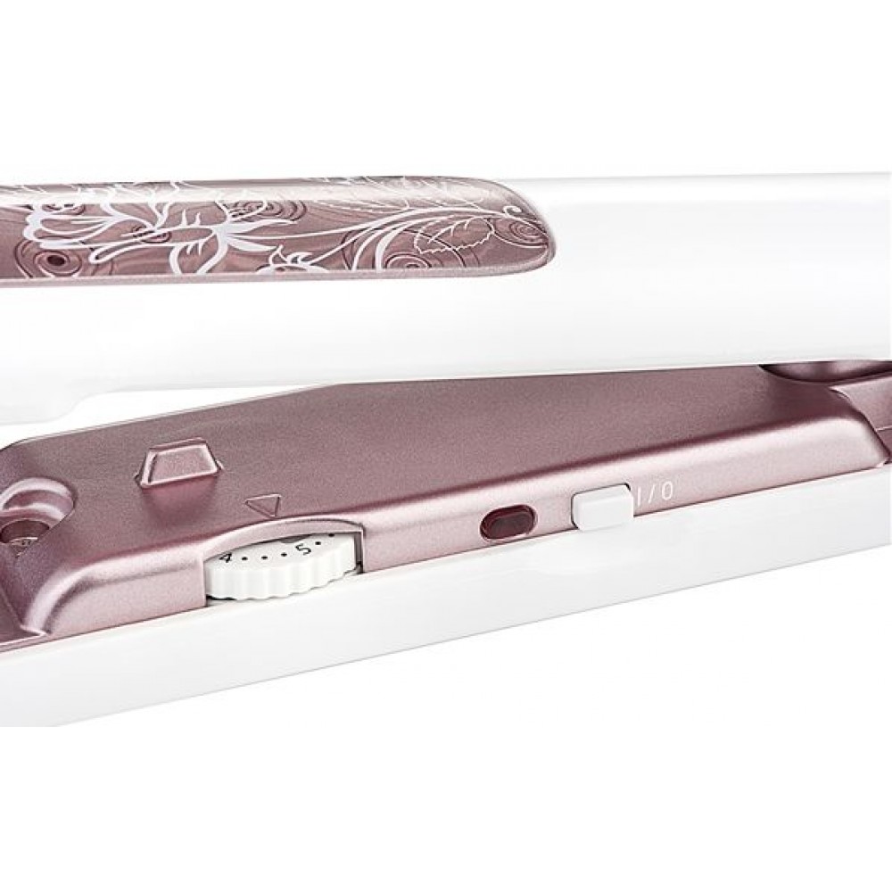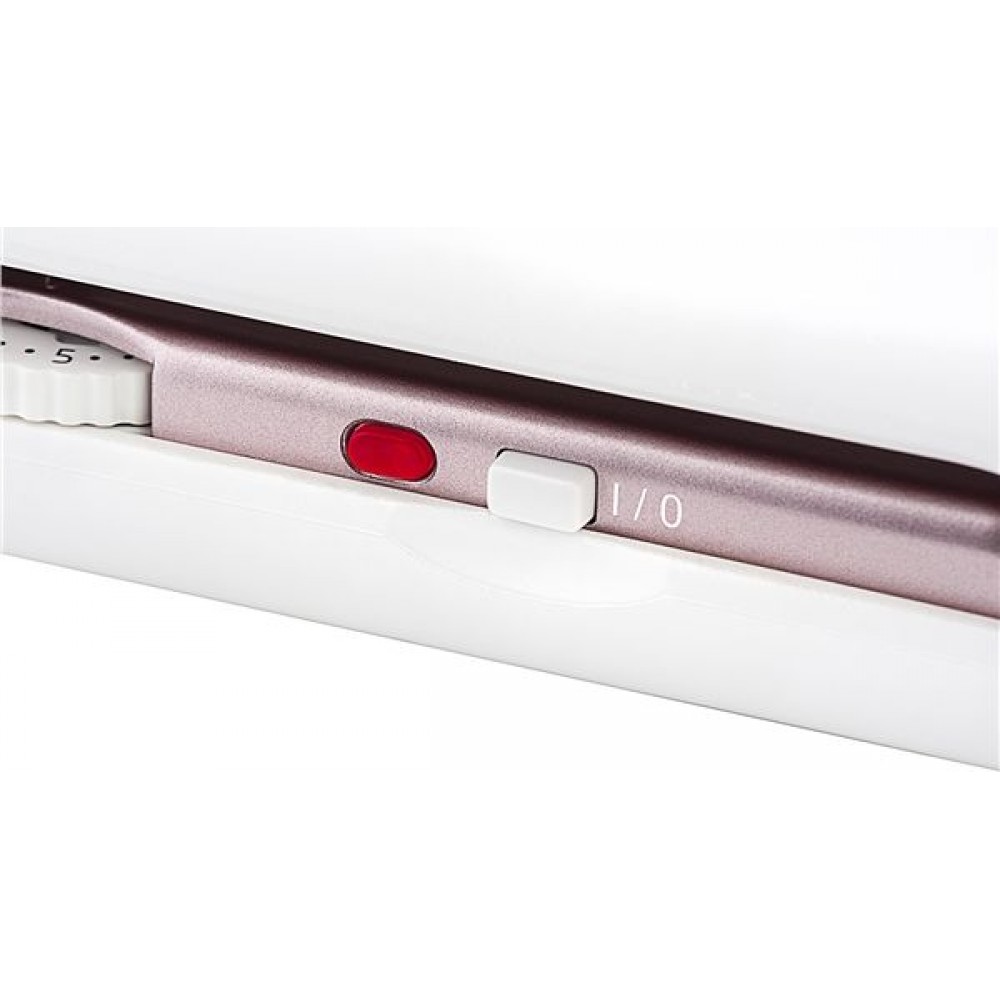 Turmalinowa powłoka wytwarza jony ujemne, a tym samym stałą jonizację, która zapobiega elektryzowaniu się włosów i ich uszkadzaniu. Elementy grzejne PTC zapewniają szybkie osiągnięcie wymaganej temperatury 200 °C. Pobór mocy prostownicy wynoci 35 W. Sygnalizacja świetlna działania. Zaletą jest przewód obrotowy do wygodnego przenoszenia.