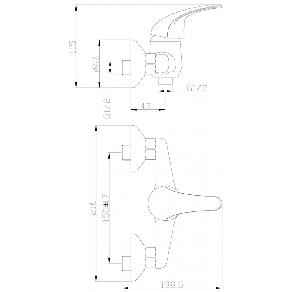 BALLETTO Bateria prysznicowa, 150mm 81105Rozstaw 150mm