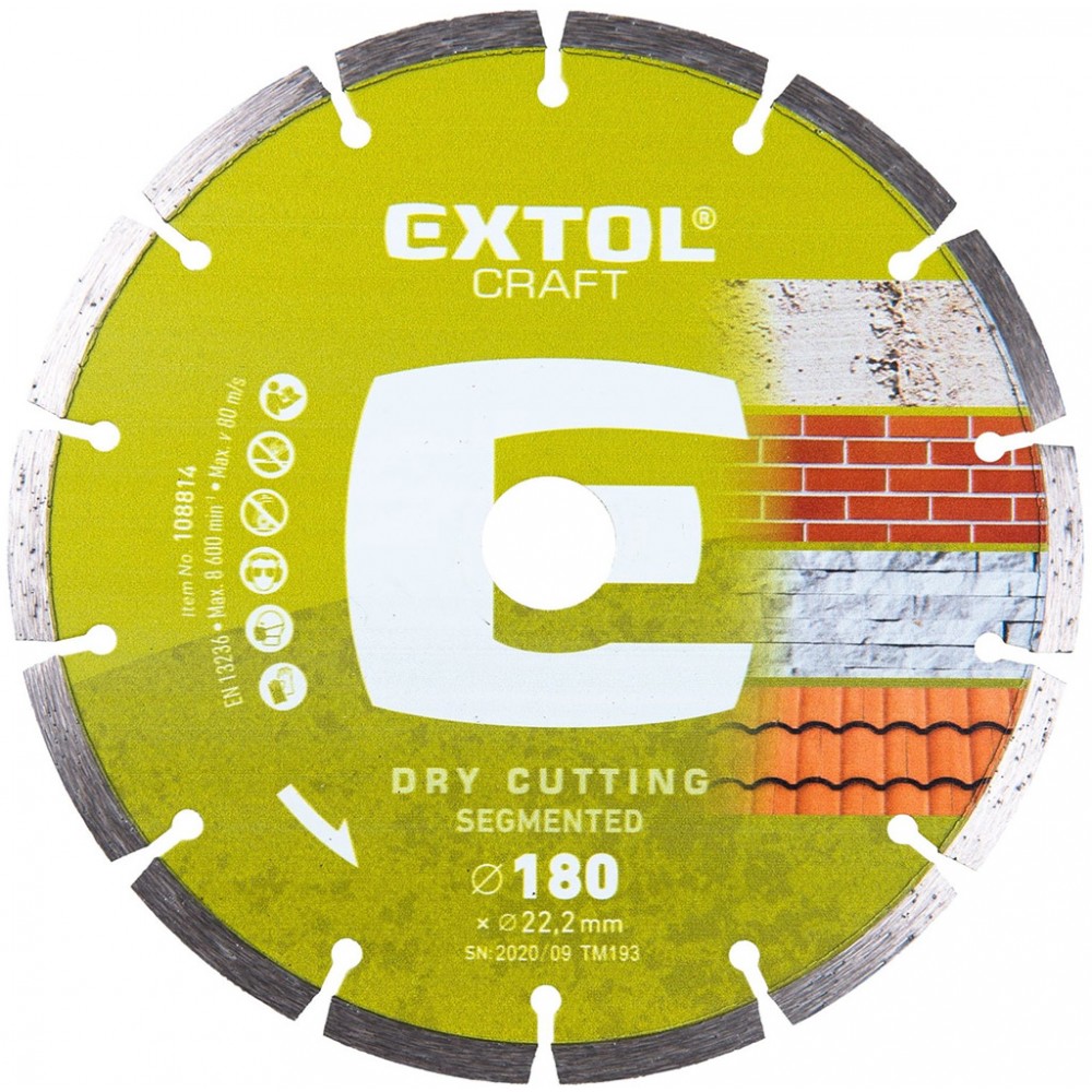 - Pro odeslání do Česka navštivte EXTOL CRAFT kotouč diamantový řezný 180x22,2mm SEGMENTOVÝ - suché řezání 108814