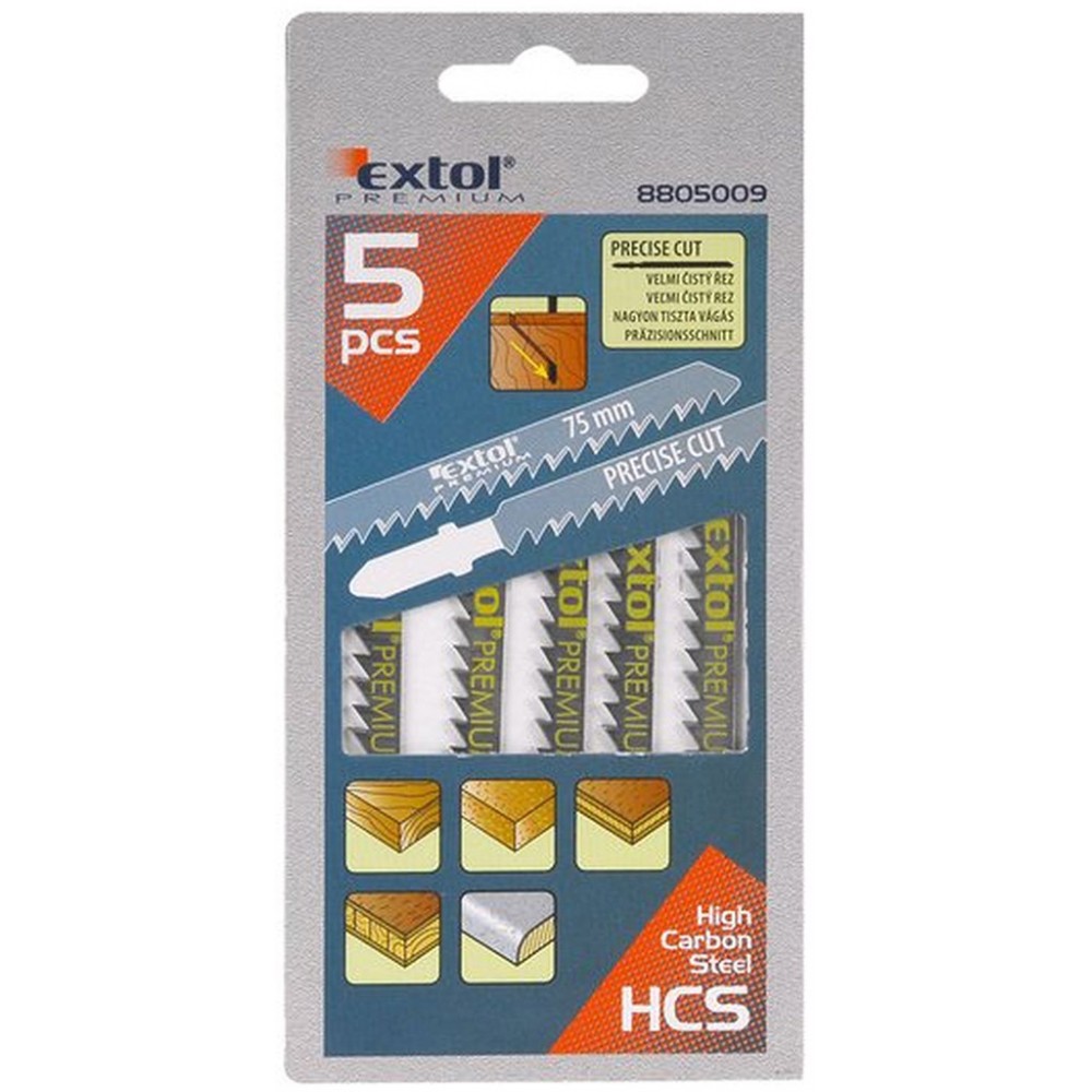 EXTOL PREMIUM Brzeszczoty do wyrzynarki, uchwyt: BOSCH, 5szt 8805009- Długość robocza: 75 mm