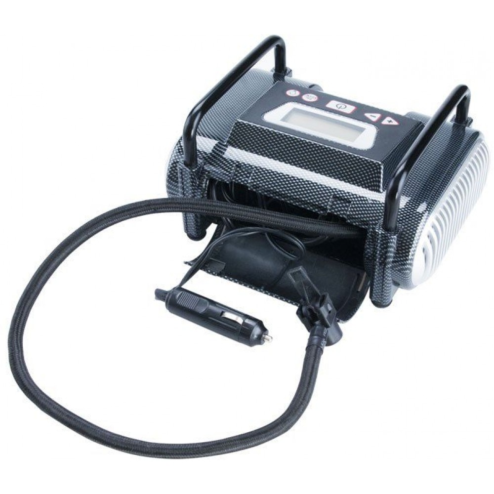 EXTOL PREMIUM CC 140 Kompresor do samochodu 12V, automatyczny z wyświetlaczem LCD i lampką 8864006Auto-kompresor jest przeznaczony do napełniania i opon opon, kół, motocykli, samochodów osobowych, pojazdów użytkowych i ciężarówek (ze względu na długość przewodu zasilającego i przewodu powietrznego modelu), balonów sportowych i ćwiczeń, materacy i leżaków, łodzi gumowych itp. przydatna część wyposażenia samochodu również do relaksujących i zabawnych pobytów. Wtyczka papierosowa 12 V DC, kabel 2,8 m, wąż napełniający 65 cm, lampka ostrzegawcza, podświetlany wyświetlacz LCD.