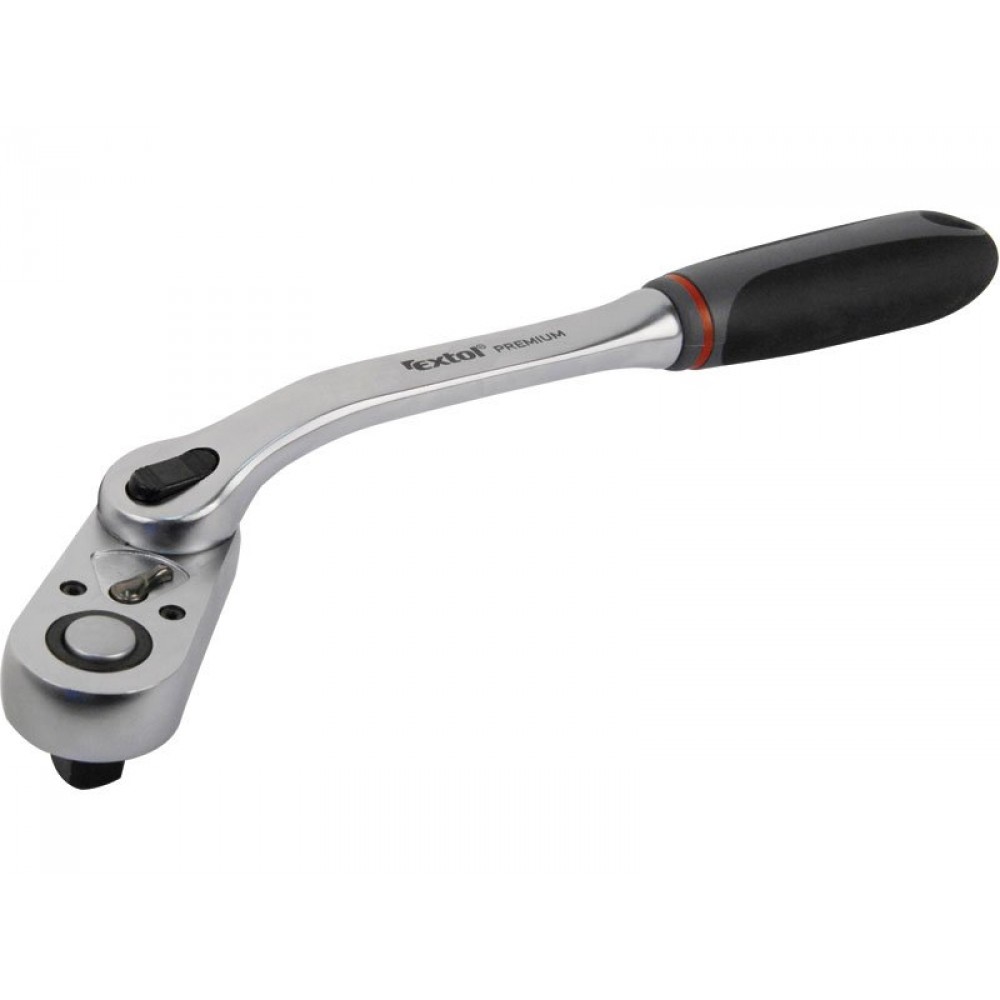 EXTOL PREMIUM Grzechotka odgięta przegubowa, 48 zębów, 1/2", L 310mm 8816423Głowica może być blokowana pod różnymi kątami 0-360 °, mechanizm przełączający bezpośrednio na grzechotce, całkowita długość 310 mm, wykonana z chromowanej stali CrV, ergonomiczny uchwyt z tworzywa ABS i zmiękczona gumą TPR.