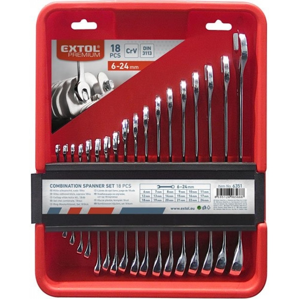 EXTOL PREMIUM Klucze oczkowo płaskie w plastikowym pojemniku, zestaw 18szt 63516-7-8-9-10-11-12-13-14-15-16-17-18-19-20-21-22-24mm
