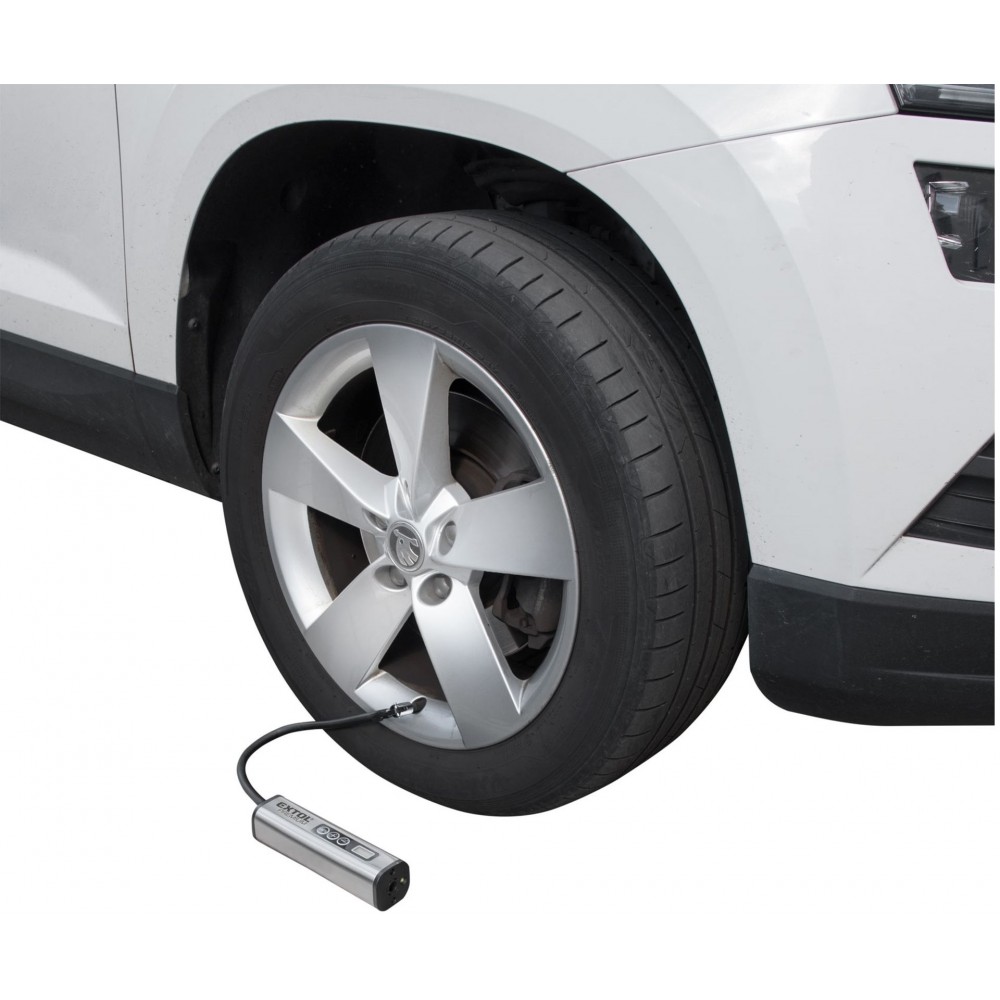 Kompresor podróżny akumulatorowy z podświetlanym wyświetlaczem przeznaczony do sprawdzania i uzupełniania ciśnienia w oponach samochodów, motocykli i rowerów do przepisanego ciśnienia lub do pompowania piłek sportowych, łóżek, materacy itp. Obsługa jest bardzo prosta - ustawiasz wymagane ciśnienie na kompresorze , uruchomiasz go, a następnie czekasz, aż się napompuje. Kompresor ma wymiary 16,6 x 5 x 5 cm i waży 0,5 kg, dzięki czemu można go łatwo spakować w drogę. Podświetlany wyświetlacz i oprawa LED, którą można włączać niezależnie od kompresora, pozwalają na używanie kompresora nawet w ciemności. Można go ładować za pomocą dostarczonego zasilacza sieciowego 230V lub z gniazda 12V pojazdu za pomocą ładowarki samochodowej 12V. Dzięki technologii Li-ion akumulatory można ładować w dowolnym momencie bez zmniejszania ich pojemności. Akumulator litowo-jonowy bardzo powoli rozładowuje się na skutek samorozładowania i wytrzymuje długo, gdy jest naładowany i gotowy do użycia.