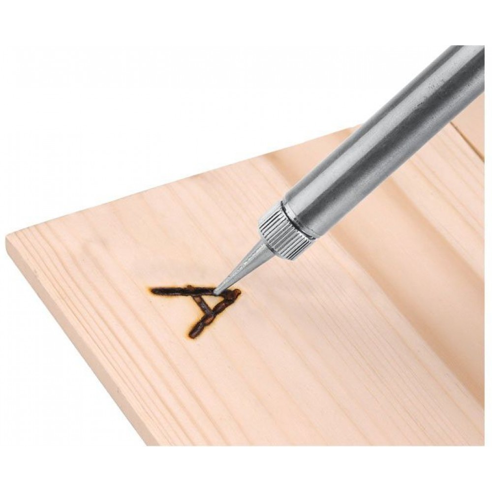 EXTOL PREMIUM Stacja lutownicza z płynną regulacją temperatury, 40W 8894520Analogowa stacja lutownicza została zaprojektowana specjalnie do lutowania miękkiego, wymagającego precyzyjnej regulacji temperatury końcówki - szczególnie w elektronice i biżuterii. Może być również stosowany do małego cięcia lub łączenia tworzyw sztucznych, a także do wypalania symboli w drewnie.
