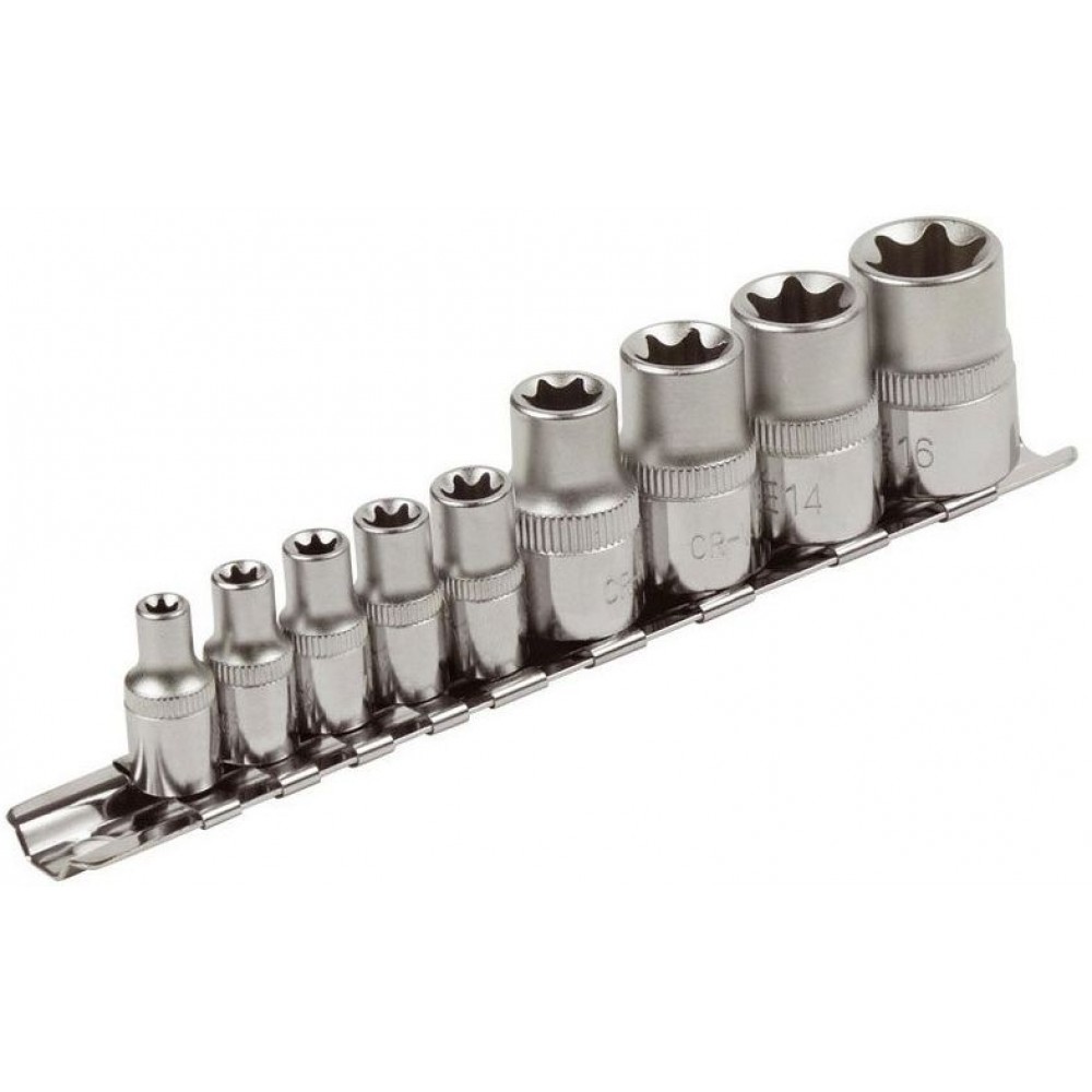 EXTOL PREMIUM Zestaw kluczy nasadowych TORX, 1/4" i 1/2", 9szt 88181141/4" E 5-6-7-8-10, 1/2" E 12-14-16-18