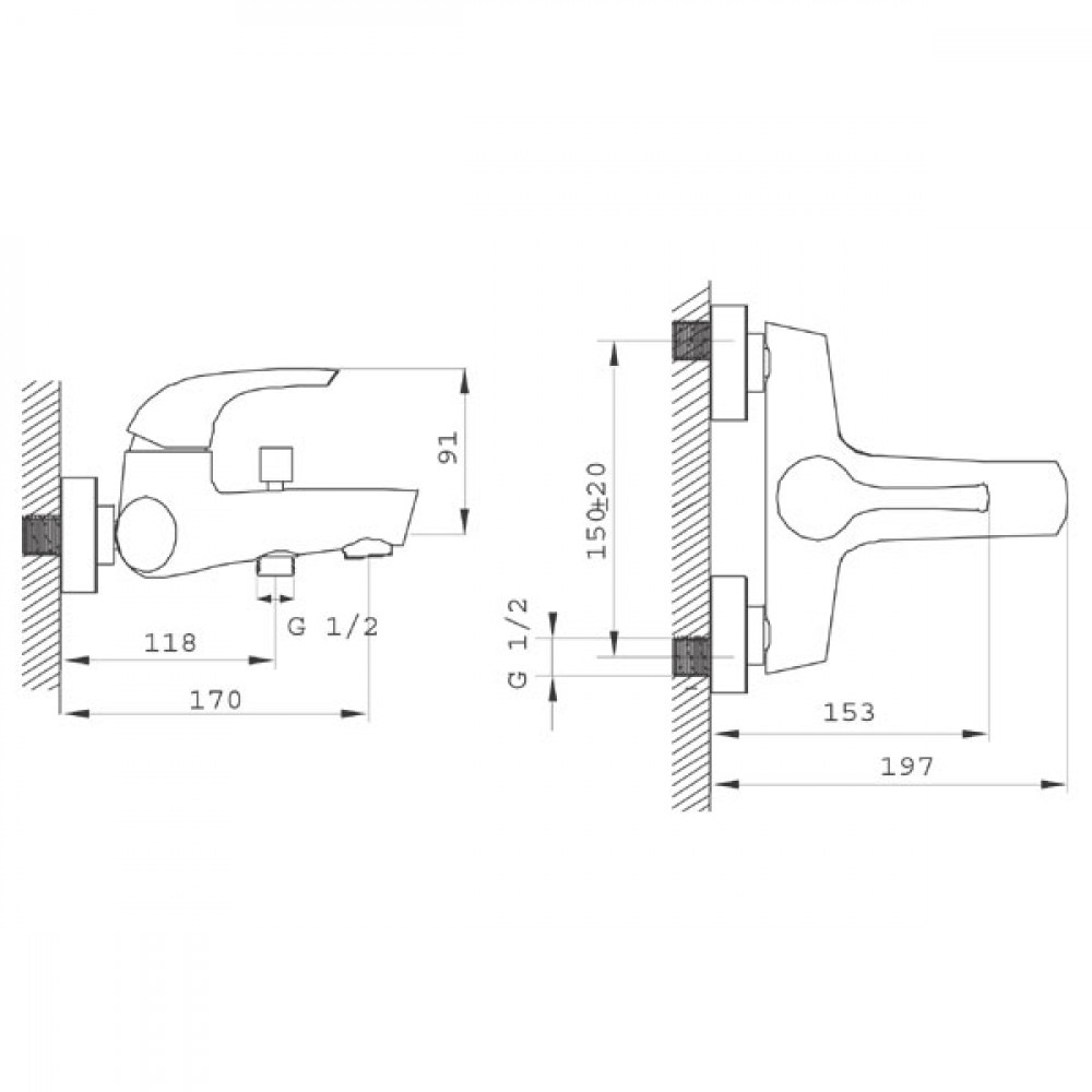 - przyłącze mimośrodowe G1 rozstaw 150 ± 20 mm
