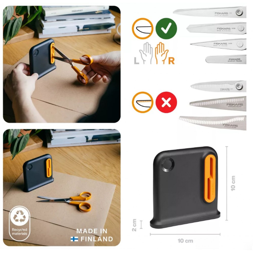 Fiskars Ostrzałka do nożyczek jest idealna do ostrzenia nożyczek z klasycznymi prawostronnymi ostrzami i utrzymania ich optymalnej ostrości przez cały okres użytkowania.