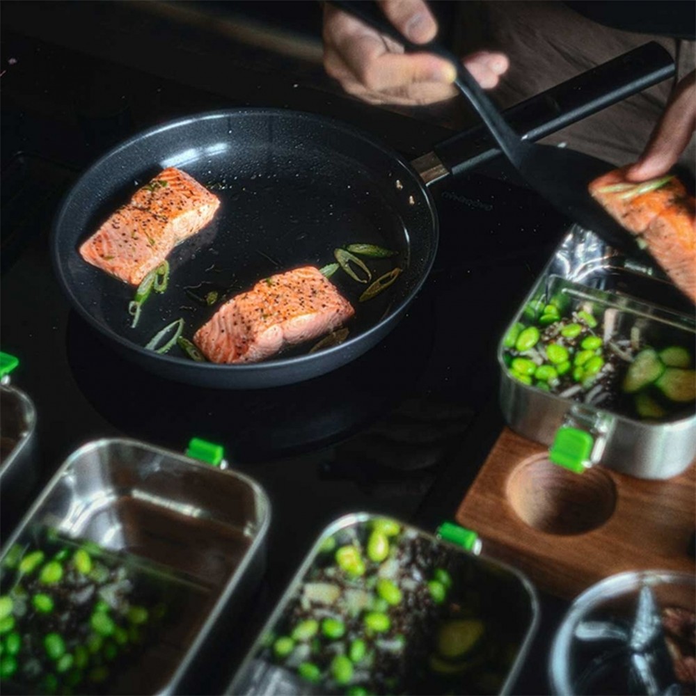 - Materiał przyjazny dla środowiska - Korpus patelni wykonany jest w 100% z aluminium pochodzącego z recyklingu, co pomaga chronić środowisko.
