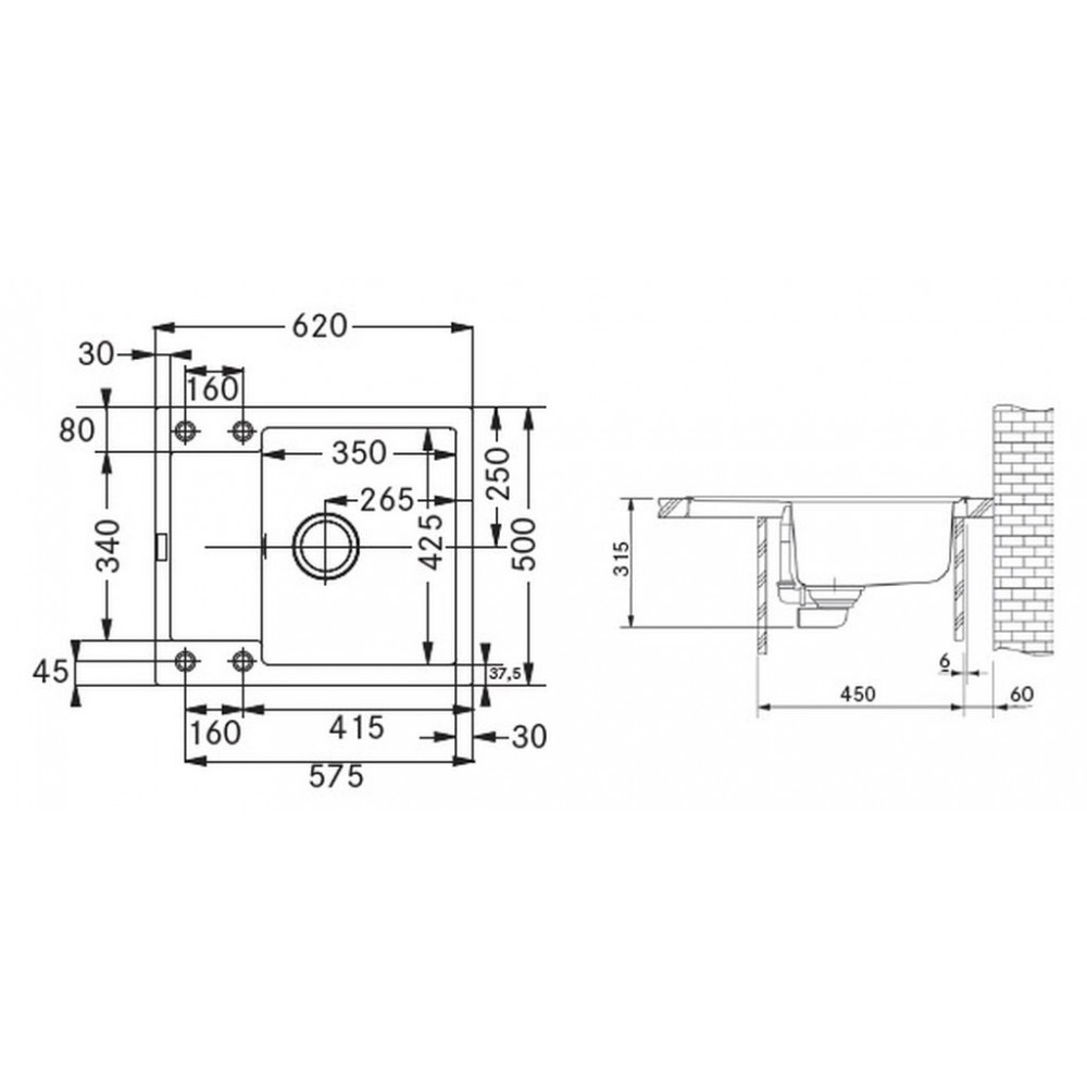 Franke Maris MRG 611-62 zlewozmywak orzechowy 114.0198.054wymiary zewnętrzne: 620 x 500 mm