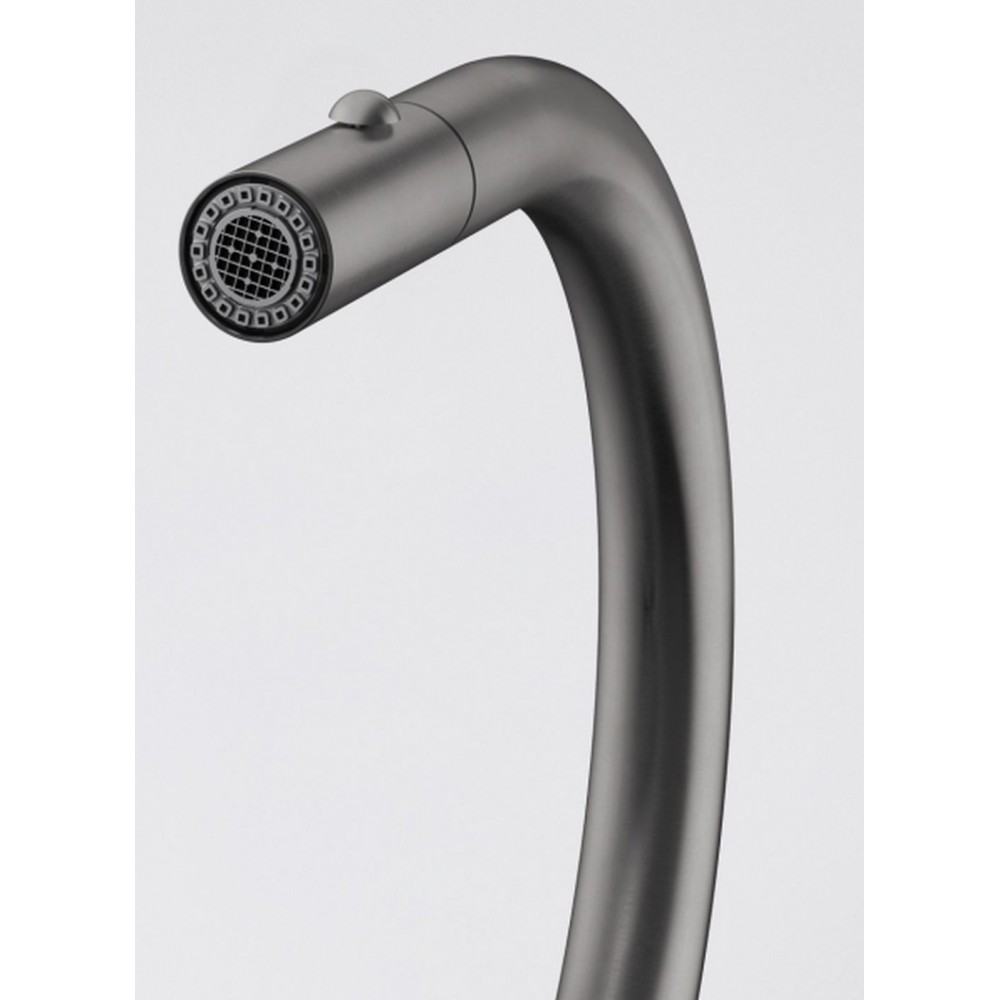 Bateria kuchenna z wyciąganą wylewką z funkcją prysznica Mythos Masterpiece pull-out spray. Model stworzony, aby być atrakcją w Twojej kuchni, wyróżnia się on wysokim i smukłym wzorzystym korpusem oraz wyrafinowanym mieszaczem. Jego wysoka wylewka sprawia, że z łatwością napełnisz duże garnki czy wazony. Innowacyjny, ruchomy przegub wyciąganej wylewki zwiększa zakres ruchu i komfort pracy. Zakres ruchu dźwigni mieszacza 0°-100° ułatwia sterowanie strumieniem wody, również wtedy, kiedy bateria znajduje się blisko ściany. Model posiada strumień laminarny - specjalna konstrukcja aeratora zapewnia zwarty i krystaliczny strumień wody eliminujący rozpryski oraz ceramiczną głowicę, która jest niezawodna w kontakcie z wodą.