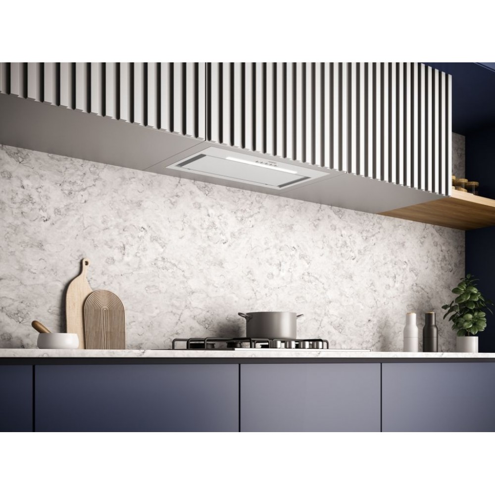 Okap do wbudowania w szafkę Box Flush Evo FBFE WH MATT A70 w kolorze biały mat został zaprojektowany, aby idealnie wkomponować się w każdą przestrzeń kuchenną. Jego cienka ramka, licująca się z szafką, tworzy dyskretny i elegancki efekt, który doskonale współgra z meblami. Dzięki minimalistycznemu designowi, okap można łatwo dopasować do różnych stylów kuchennych – od nowoczesnych, po klasyczne aranżacje. Wyposażony w aluminiowy filtr, który można myć w zmywarce, a system FastFix, zapewniający szybką i wygodną instalację, okap łączy w sobie funkcjonalność, estetykę i wygodę użytkowania.