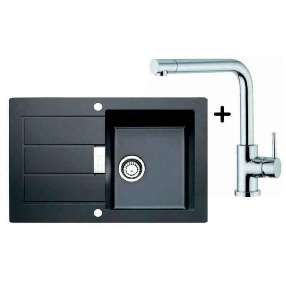 - Pro odeslání do Česka navštivte Franke SET T14 tectonitový dřez SID 611-78 černá + dřezová baterie Samoa