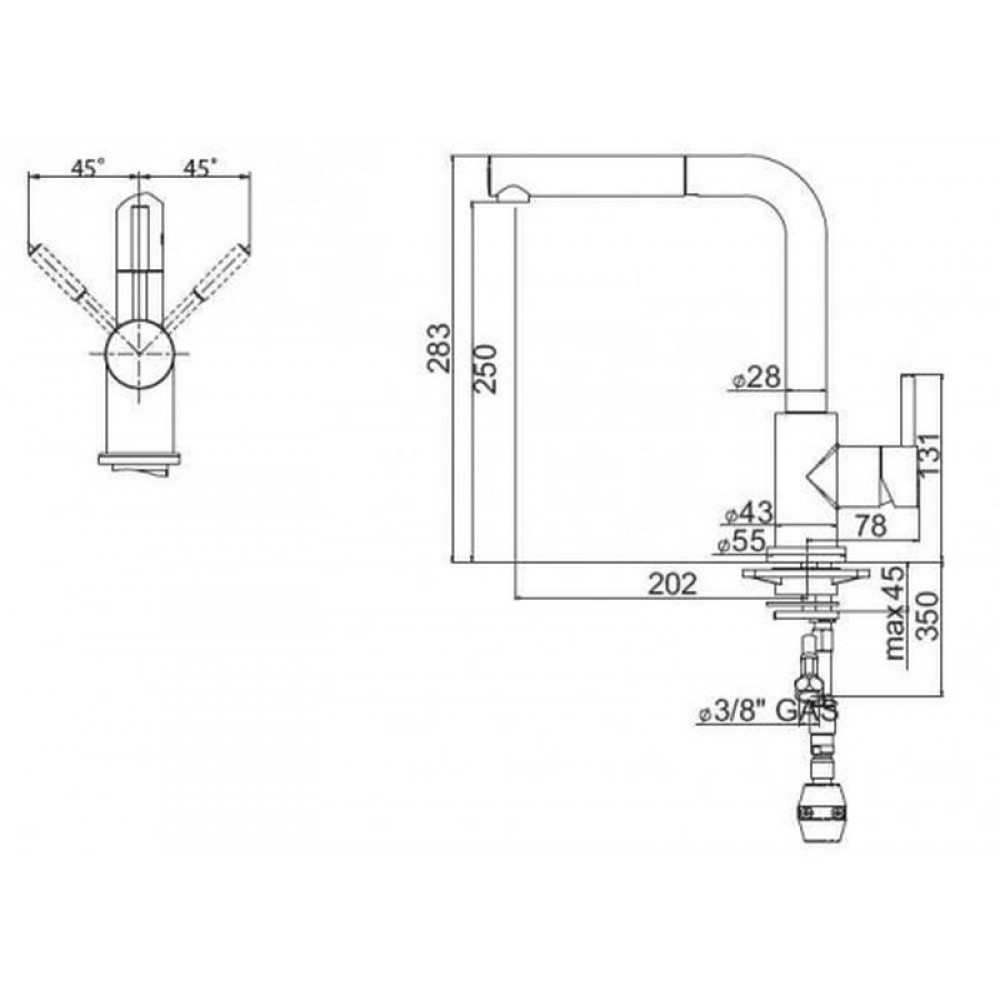 Zasięg wylewki: 120 cm