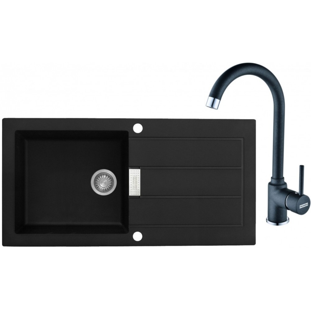 Franke Zestaw T27 Zlew tektonitowy SID 611 czarny + bateria FP 9900 114.0366.033Sirius SID 611-100, zlewozmywak czarny 114.0120.458