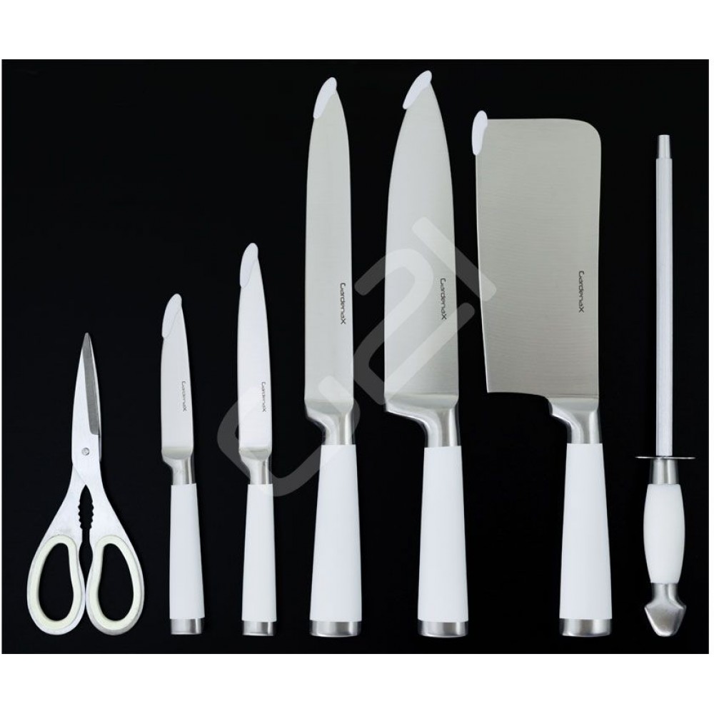 G21 7-częściowy zestaw noży Profi White , biały 6390473Rozszerzony zestaw ostrych noży ze stali nierdzewnej w eleganckiej konstrukcji.