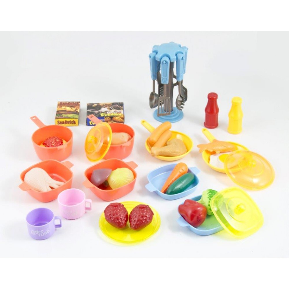 G21 Plastikowe jedzenie i naczynia dla dzieci 30 szt 690790Zestaw świetnie uzupełnia dziecięce kuchenki.