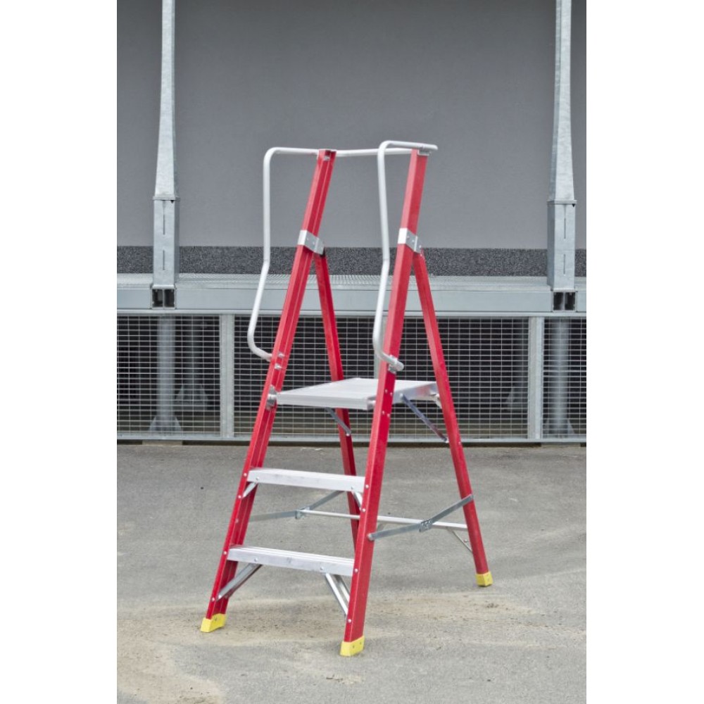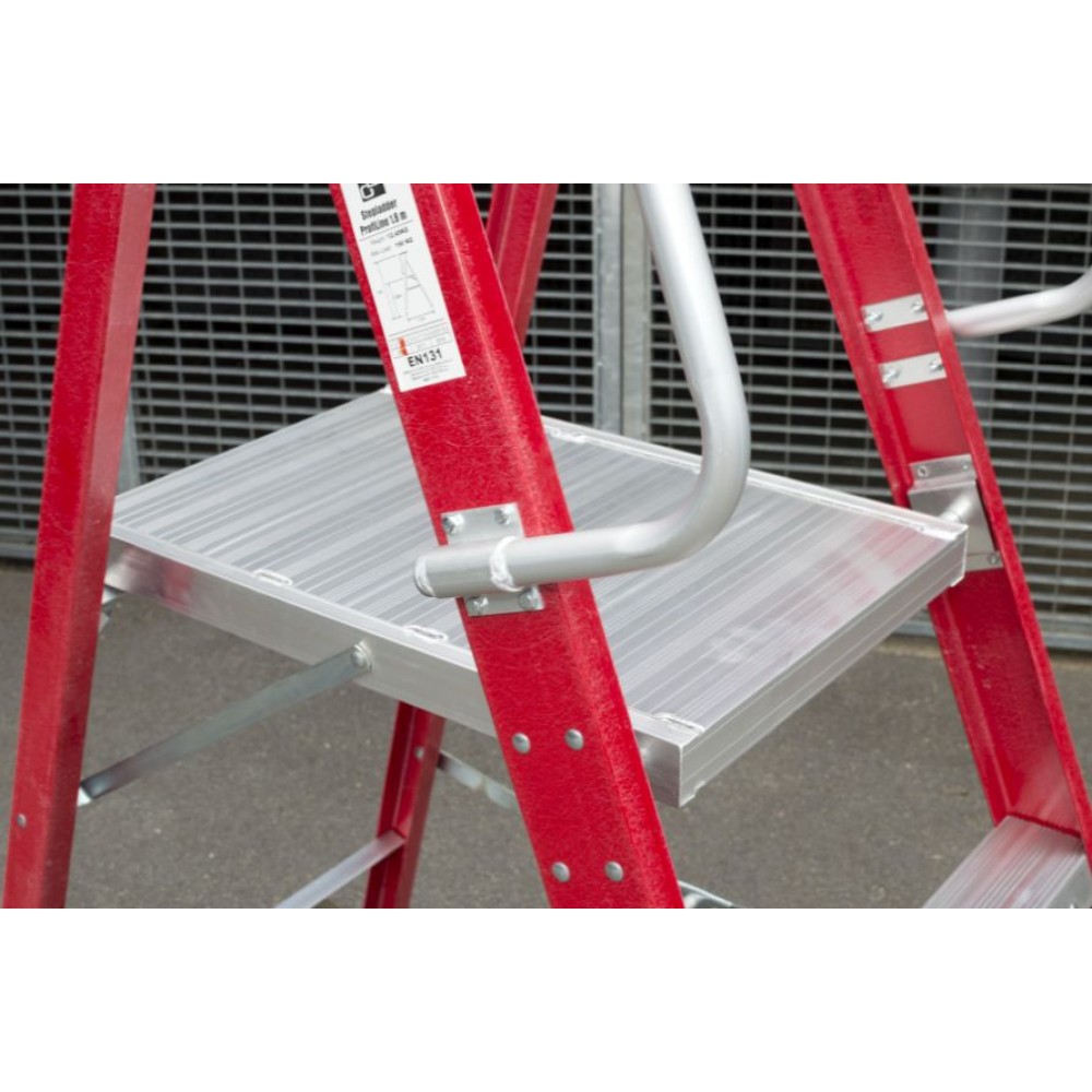 Jednostronne etapy pracy G21 ProfiLine są powszechnie stosowane do prac montażowych w różnych branżach, w usługach sprzątania lub w magazynach.Stabilna konstrukcja stopni o wadze 12,8 kg ma 180 cm wysokości z 2 stopniami i platformą o wysokości 86 cm. Panele boczne wykonane są z wysokiej jakości włókna szklanego, które jest odporne na warunki atmosferyczne, korozję i jest stabilne strukturalnie. Po bokach znajdują się stałe uchwyty bezpieczeństwa, które ułatwiają wejście i stanie podczas pracy.