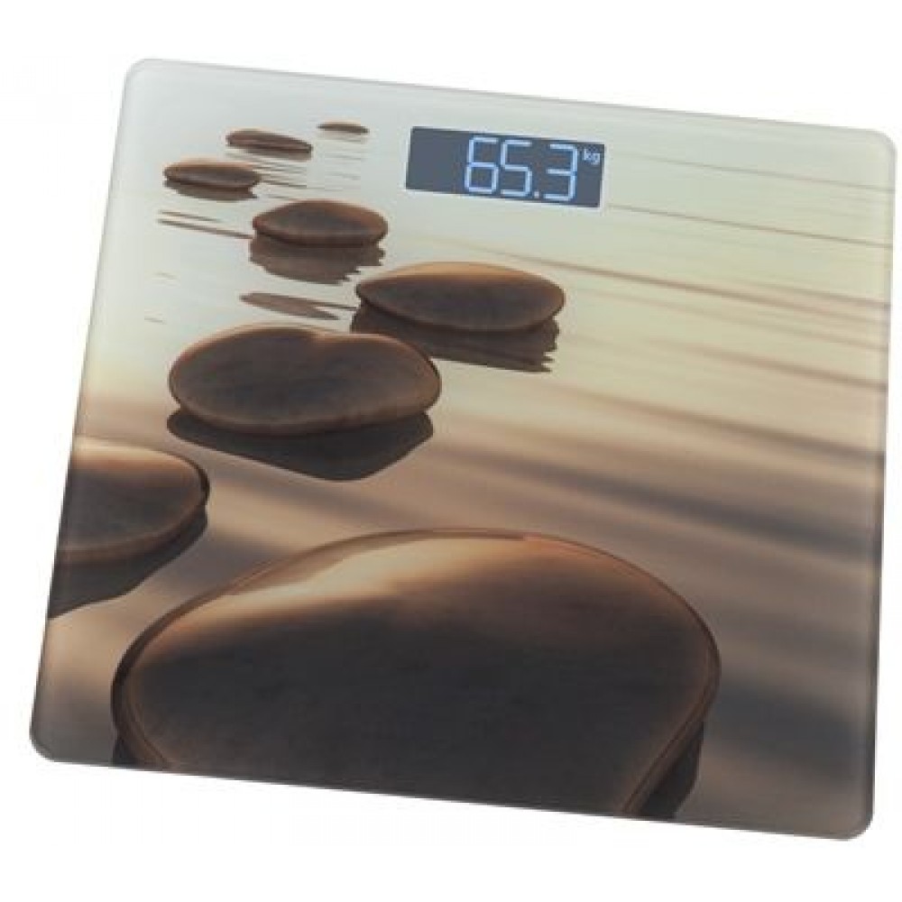 GALLET PEP 951 Pierres beiges Elektroniczna waga osobowa, motyw na szkle GALPEP951Przenośna waga osobowa z ciekawym kolorowym motywem na powierzchni szkła waży z dokładnością do 100 g w zakresie do 150 kg.