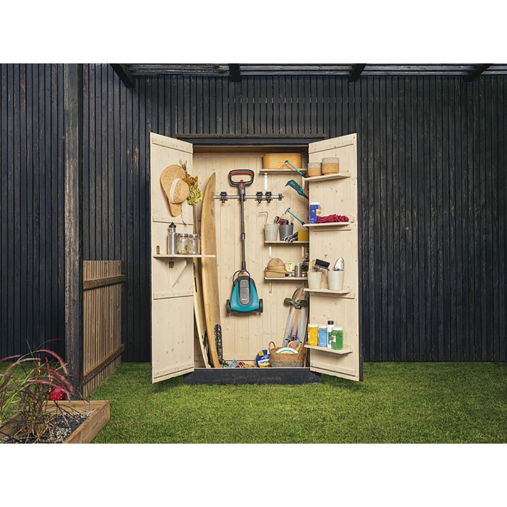 Ruchomy uchwyt ułatwia wjeżdżanie pod krzewy i meble ogrodowe.