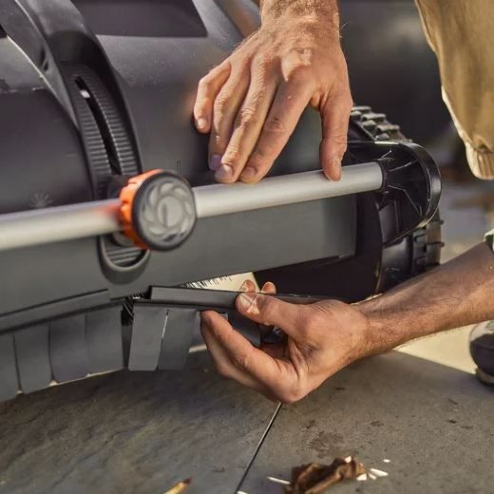 - Wszechstronna osłona przednia – poprawia zbieranie z niskiej trawy i tarasów.