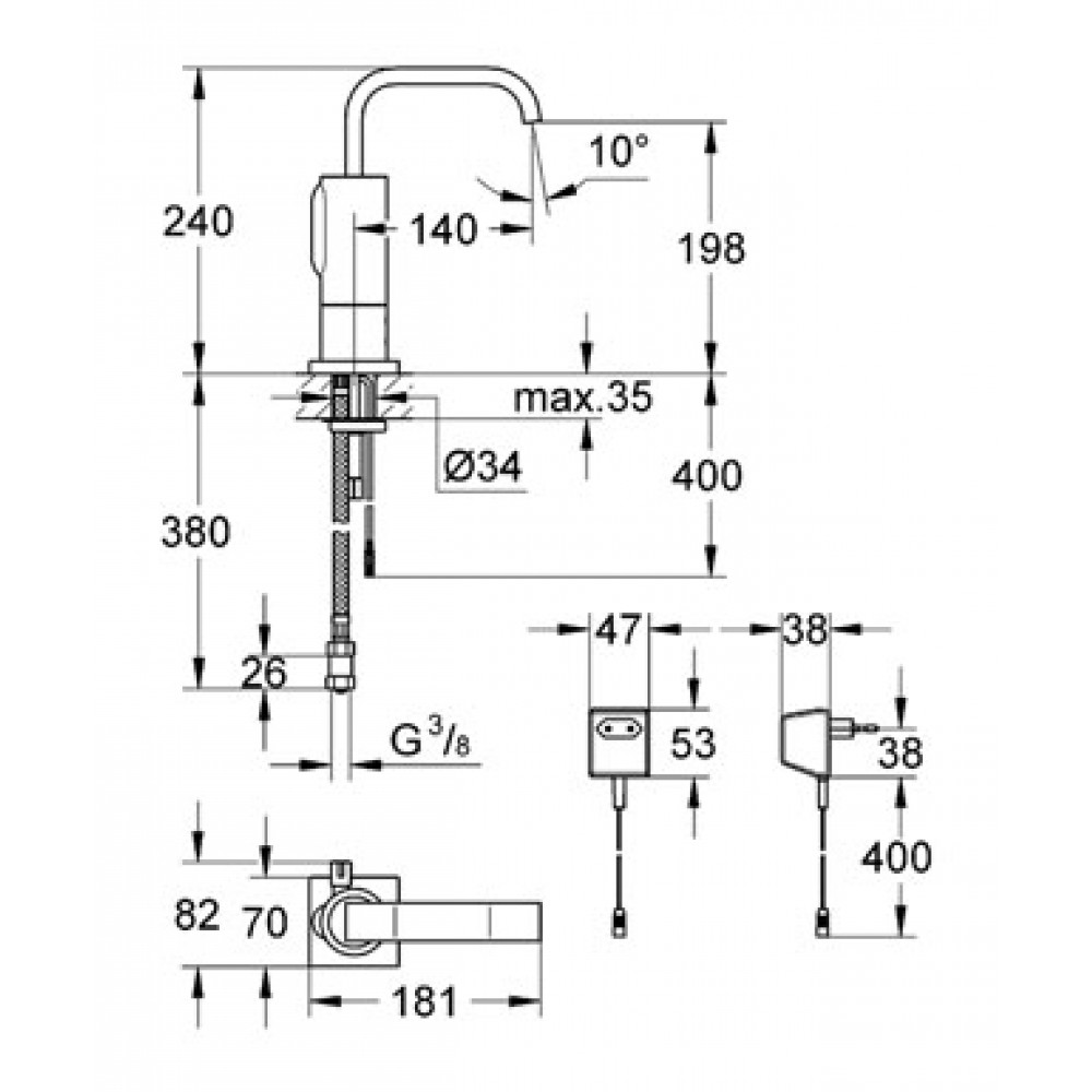 GROHE Allure E Bateria umywalkowa na podczerwień chrom 36098000elektronika na podczerwień do umywalki z mieszaczem