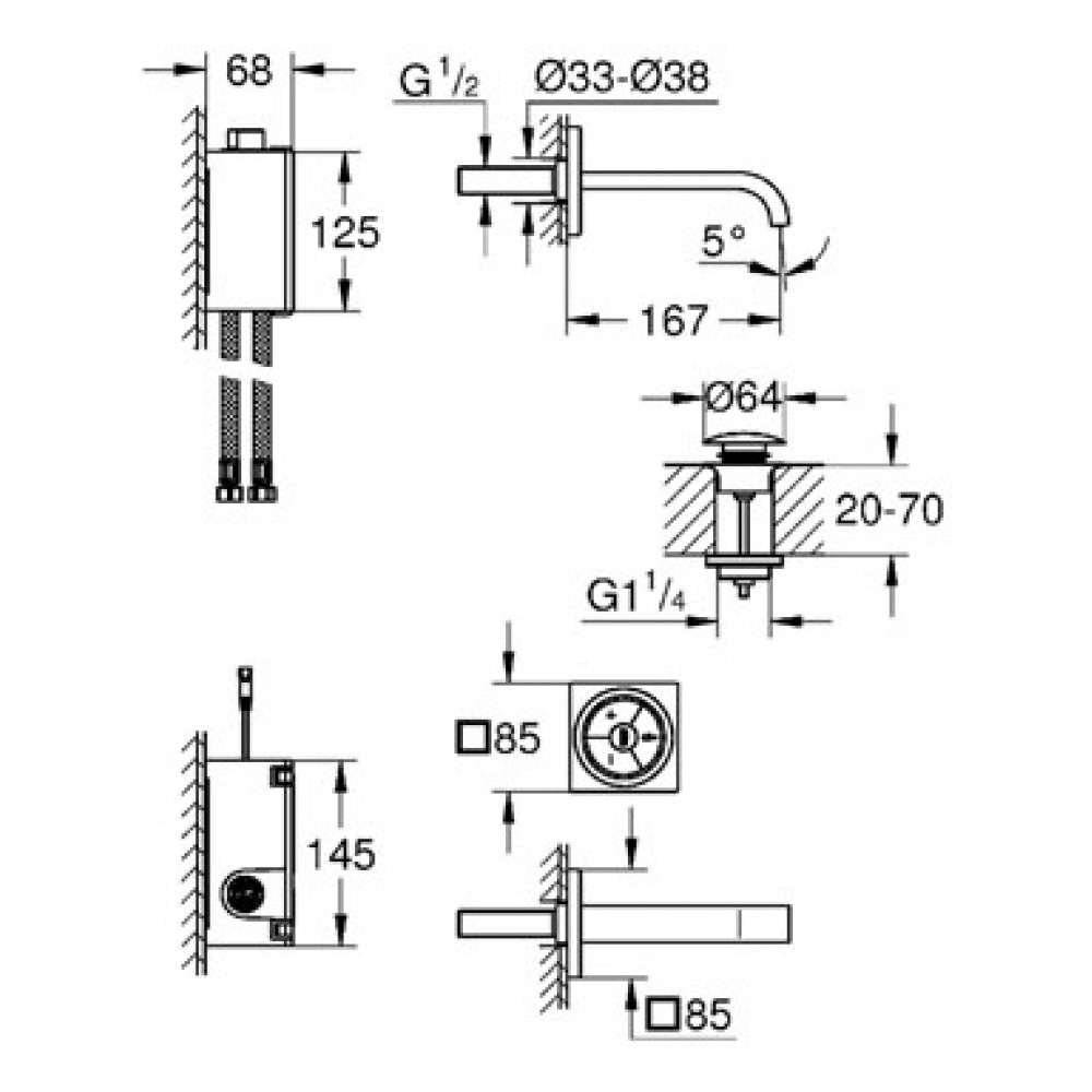 GROHE Allure F-digital elektroniczna bateria umywalkowa S - Size 36343000 zawiera mieszacz elektronicznymontaż ścienny