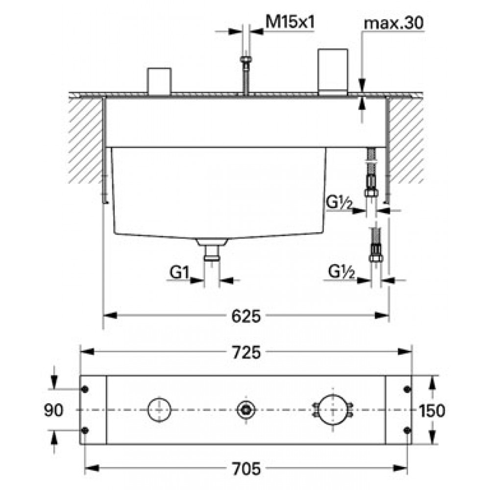 GROHE Element wewnętrzny podtynkowej baterii 3-otworowej wannowej 33341000-część wewnętrzna podtynkowa