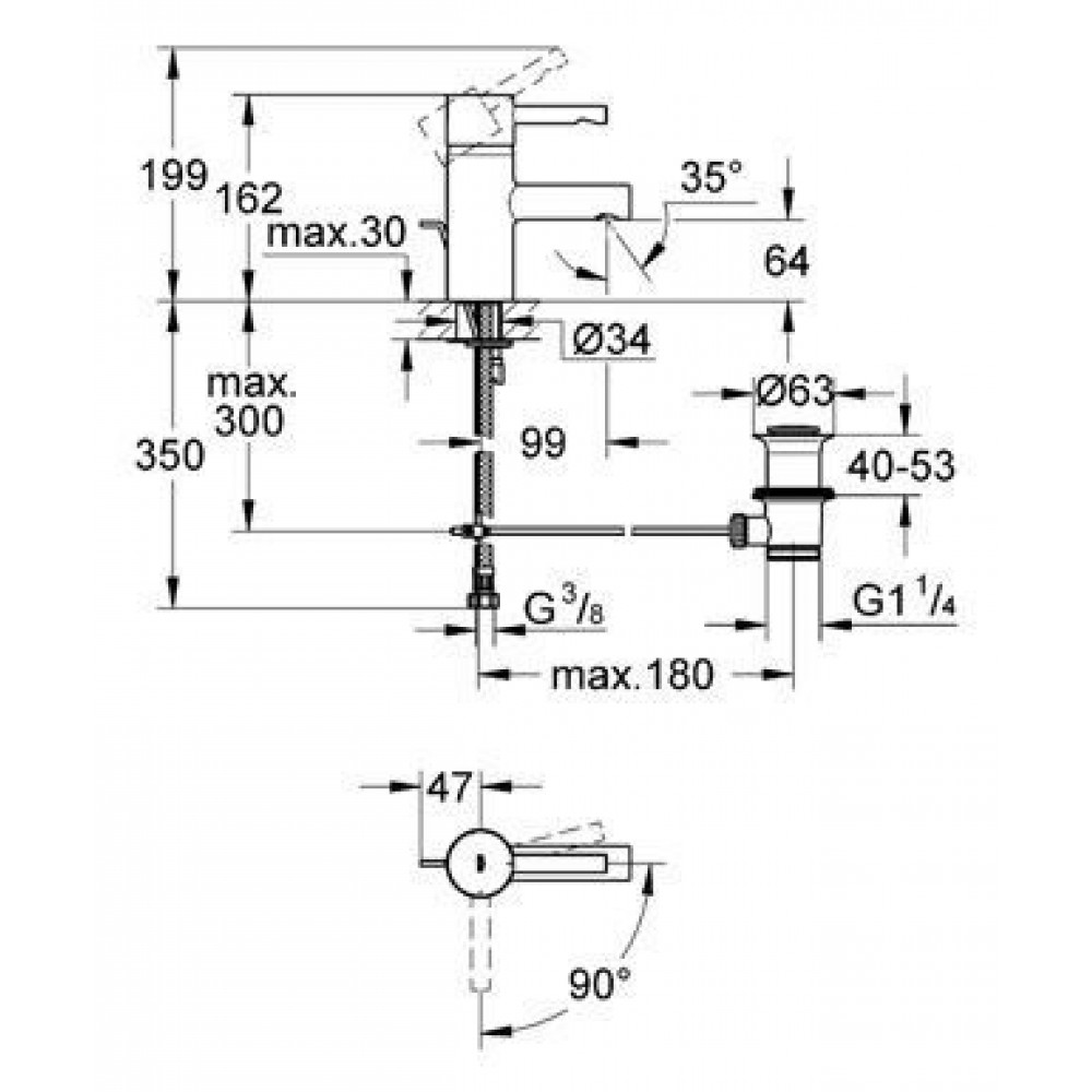 GROHE Essence Bateria umywalkowa, DN 15 S-Size ES 2336900Emontaż jednootworowy
