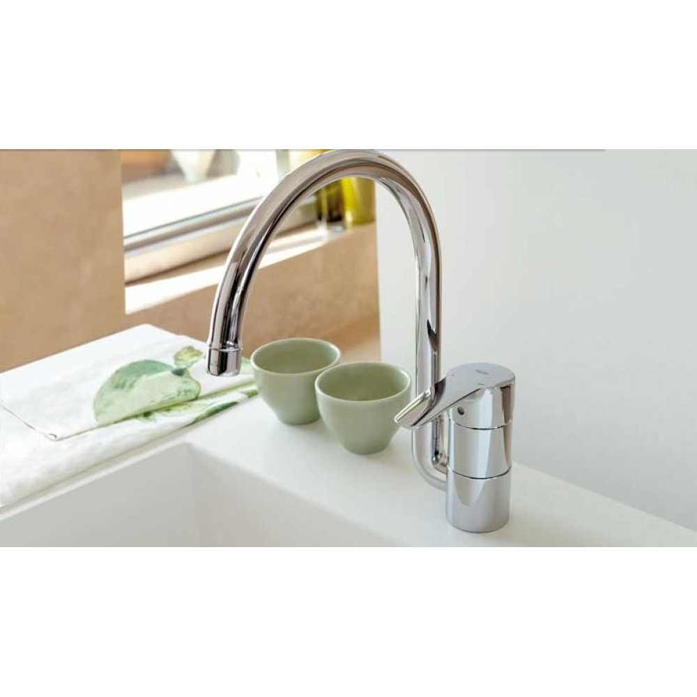 Eurostyle-zaprojektowany by służyć latami łączy współczesne wzornictwo z najnowszymi technologiami i funkcjonalnością. W solidnej i łatwo obsługiwalnej dźwigni zastosowano technologię GROHE SilkMove®, aby zwiększyć funkcjonalność. Wdzięczny zarys łukowatej wylewki dodaje elegancji kuchennemu zlewowi. Model Eurostyle jest dostępny z niską lub wysoką łukowatą wylewką i ma nieskazitelne wykończenie. Wersja GROHE EcoJoy Model™ zachęca do oszczędzania wody w kuchni