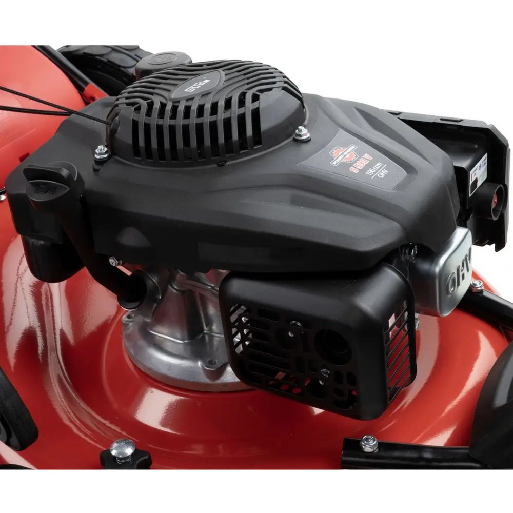 Za niezawodną wydajność odpowiada silnik Power-Engine V200 – mocny silnik 4-suwowy o pojemności 196 cm³ i mocy 3,7 kW (5,03 PS), pracujący z prędkością znamionową 2900 obr./min. Szerokość cięcia 55 cm (550 mm) pozwala szybko skosić powierzchnię do 2200 m². Dzięki funkcjom koszenia, mulczowania i bocznego wyrzutu łatwo dopasujesz tryb pracy do aktualnych warunków, a zbiornik paliwa 1 l umożliwia dłuższą pracę bez częstego tankowania.