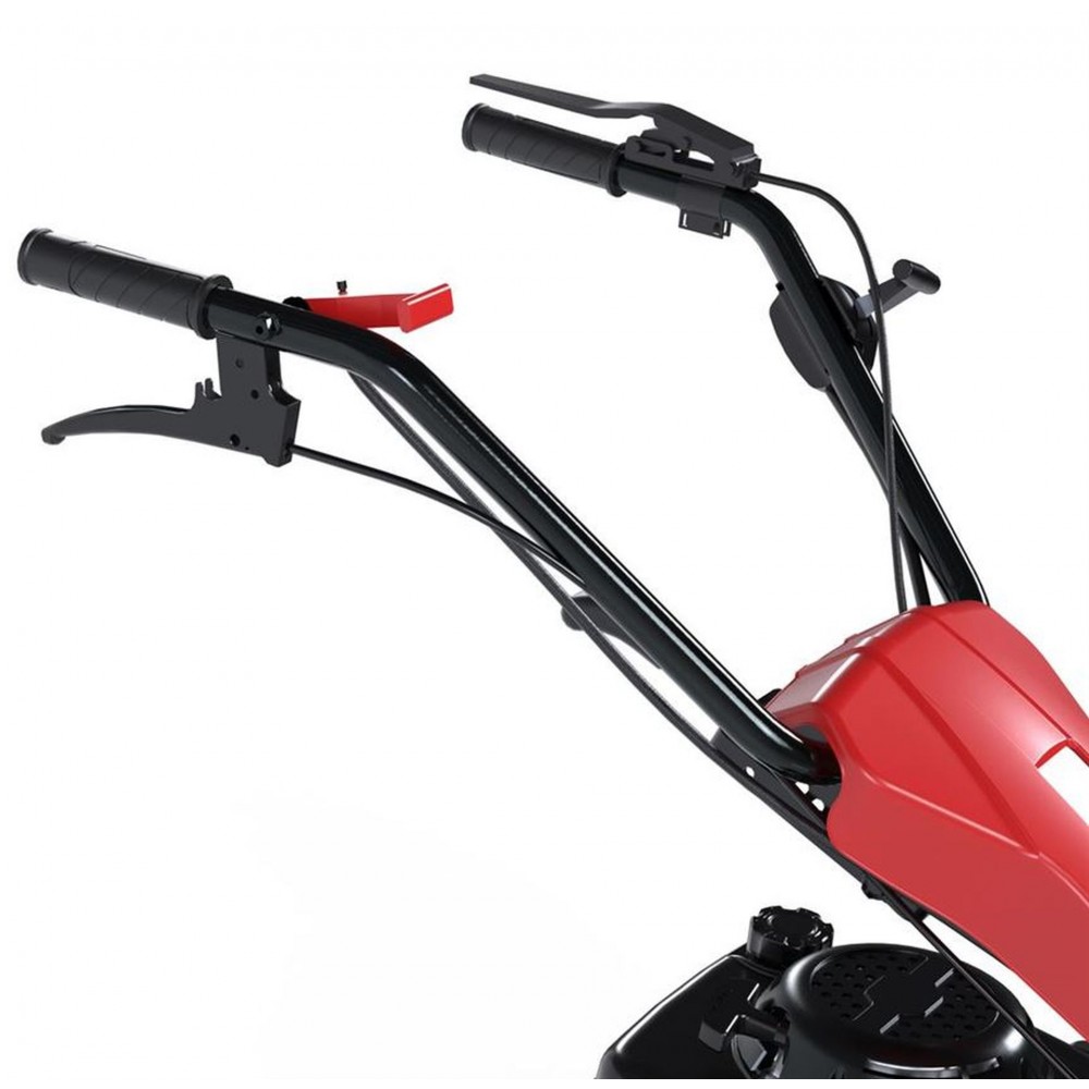 Ręczny rozruch zapewnia łatwe uruchamianie, nawet po długich okresach bezczynności. Kosiarka oferuje zmianę biegów dla optymalnej kontroli i prowadzenia. Dzięki napędowi kół i oponom z bieżnikiem terenowym zapewnia dużą moc i prędkość do 3 km/h.