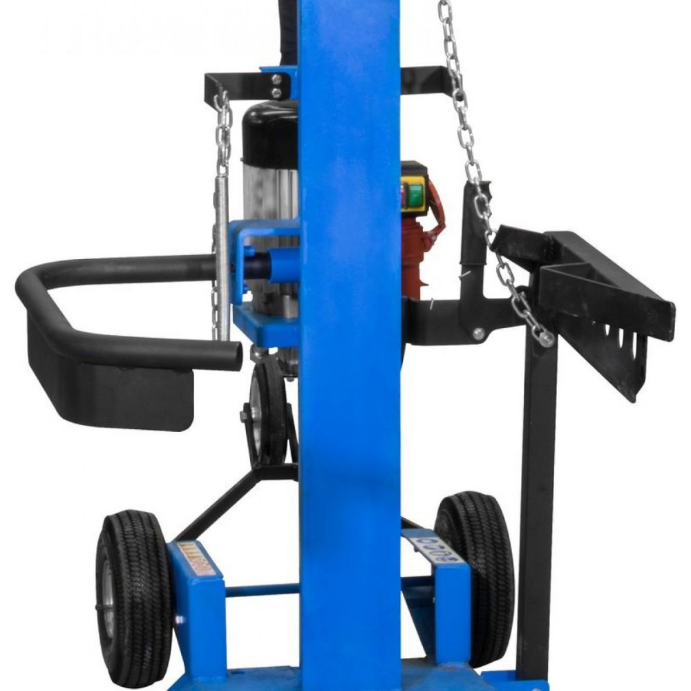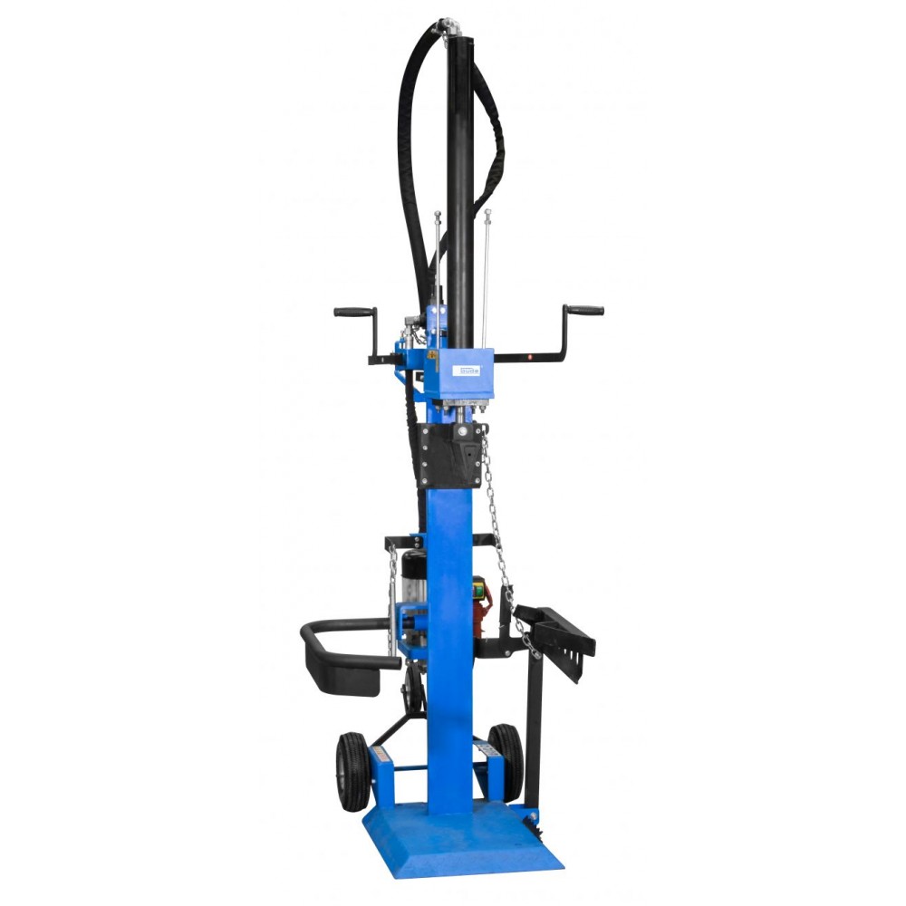 Potężny splitter do łupania pociętego drewna opałowego. Pionowy podział (do) metrowego drewna na kotły zgazowujące, piece kanadyjskie itp. - maks. Średnica bloków: 400 mm, długość: 330 - 1.000 mm. GHS - najnowsza seria maszyn do łupania spełniająca wymagania bezpieczeństwa maszyn rolniczych (leśnictwo). Bezpieczne (oburęczne) sterowanie rozdzielaczem za pomocą dźwigni sterujących; precyzyjna regulacja skoku noża łupiącego zgodnie z rzeczywistą długością kłody; długi (gruby) podnośnik do kłód. Silnik 4,3 kW / P1 (typ pracy: S6 / 40%), przełącznik (przełącznik) włącznie. gniazdo z przetwornikiem fazowym. Konstrukcja: solidna rama stalowa, mocna pompa hydrauliczna, cylinder noża łuparki (skok tłoka: 960 mm), ramię trzymające, stabilna (niska) podstawa, uchwyt pociągowy, koła transportowe