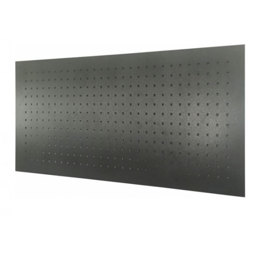 Blacha stalowa malowana proszkowo, podwójne wzmocnienie z otworami do zawieszenia z tyłu. Standardowa perforacja kwadratowa, otwory 10 x 10 mm, odległość między otworami 38 mm.