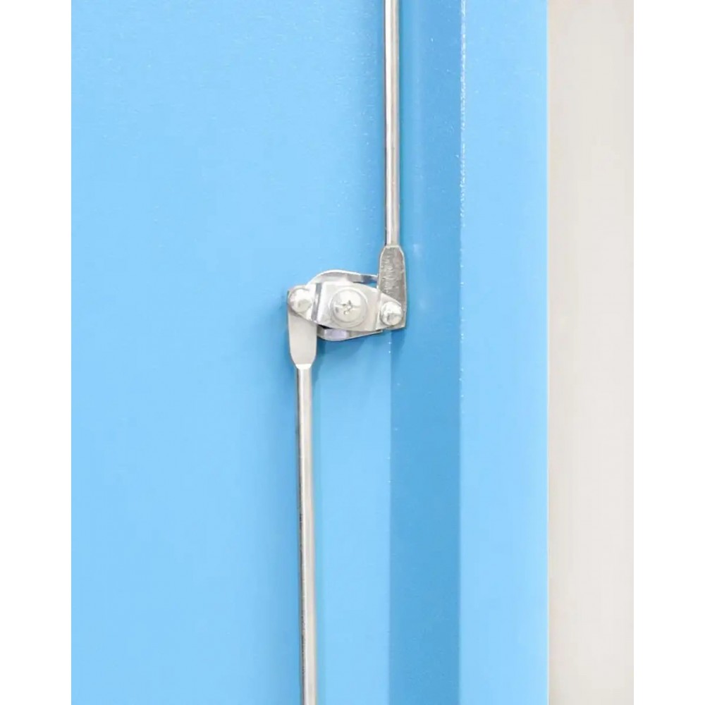 Bezpieczeństwo przechowywanych przedmiotów zapewniają drzwi dwuskrzydłowe z centralnym zamykaniem oraz dwupunktowy system ryglowania. Szafa dostarczana jest w stanie niezamontowanym, co ułatwia transport i montaż.