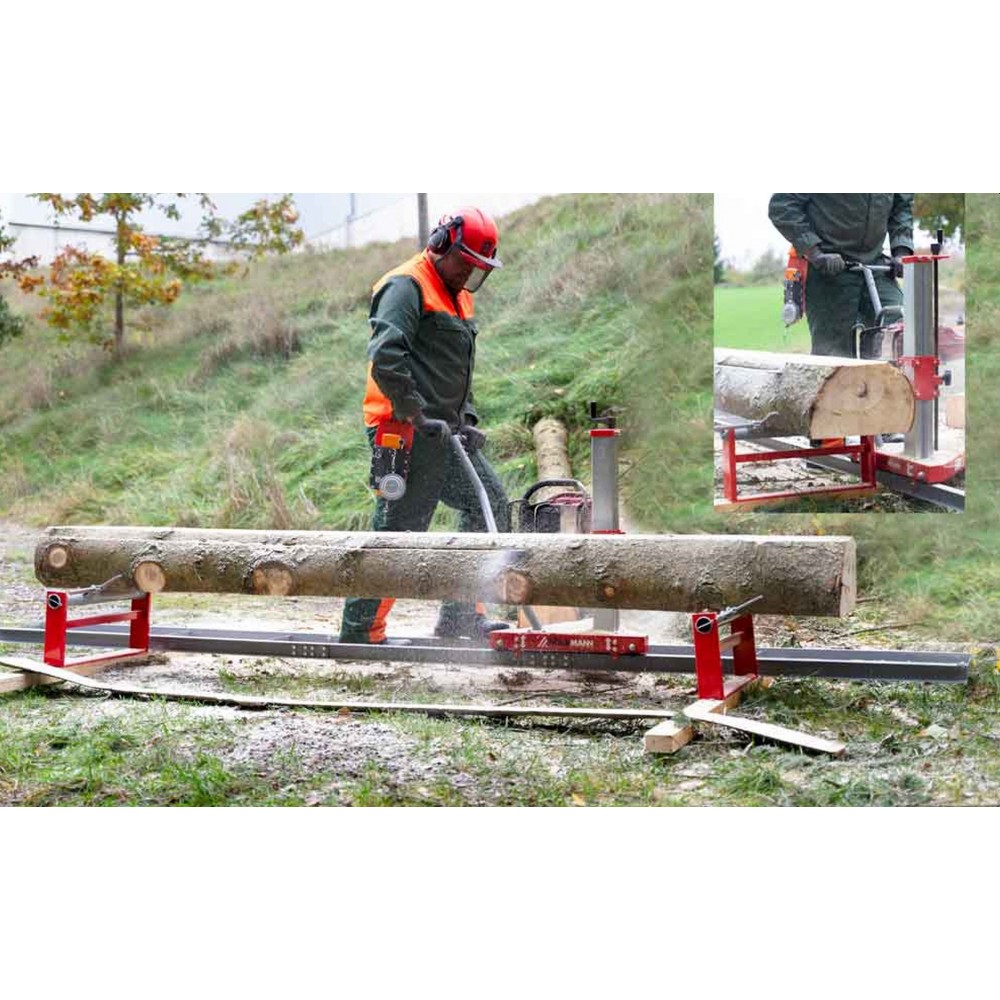 Mobilny stół do pilarki łańcuchowej HOLZMANN MOBAS2, w połączeniu z Twoją piłą łańcuchową, umożliwia przetwarzanie pni drzew na deski.
