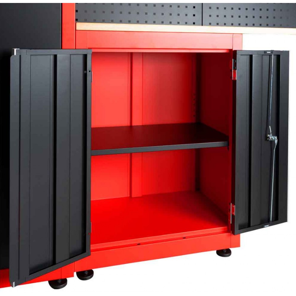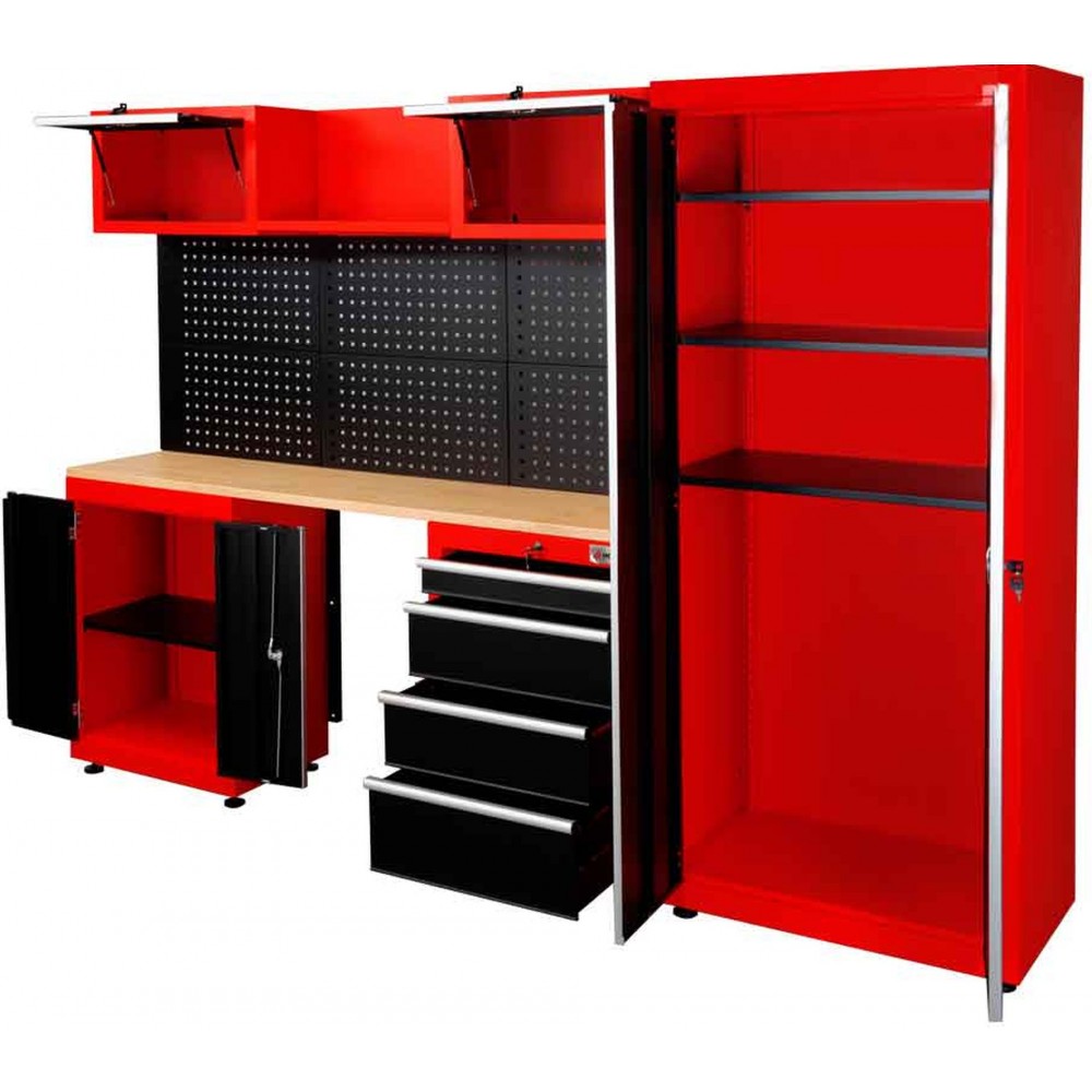 13-częściowy stół warsztatowy z szafkami składa się z: • 1 szafki 762 x 458 x 1830 mm z 3 półkami • 2 szafek wiszących 610 x 280 x 338 mm z siłownikiem gazowym &bu... rozwiń opis »