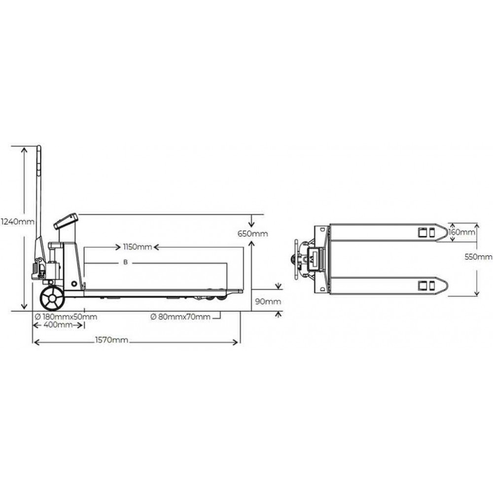 | Wymiary wideł | 1150 × 550 mm |