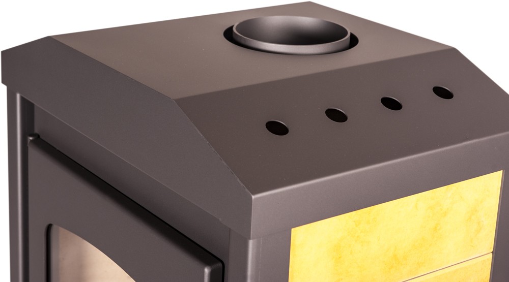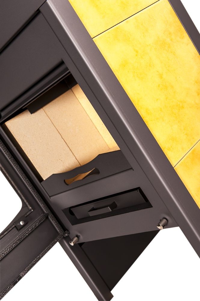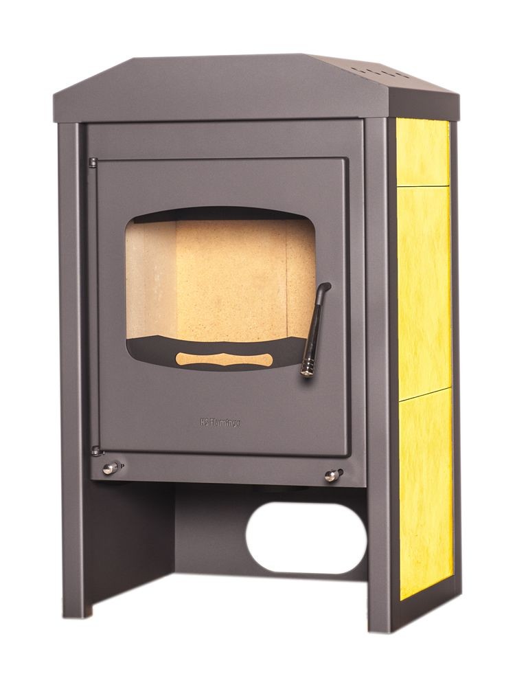 HSFLAMINGO Piec wolnostojący VEGA 9 kW szary / żółtyStalowy piec wolnostojący z paleniskiem wyłożonym szamotem: