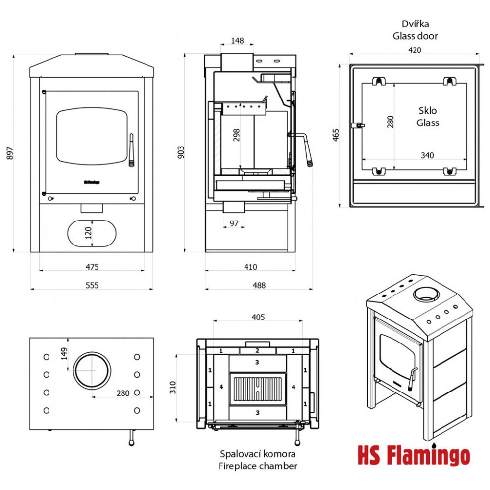Piece HS Flamingo jest czysto czeski produkt. Jest duży nacisk od użytych materiałów i ich szczególnej siły. Kuchenka spełnia najwyższe standardyeuropejskie, które czynią je bardzo pożądane również w zagranicy. Komora wykonana jest z blachy stalowej 5 mm dla całkowitego spalania jest obsadzony prawo samotność. Główną zaletą spalania wtórnego przy użyciu trzeciorzędowej dopływ powietrza do spalania zapewnia wysoką wydajność, niskie zużycie paliwa.