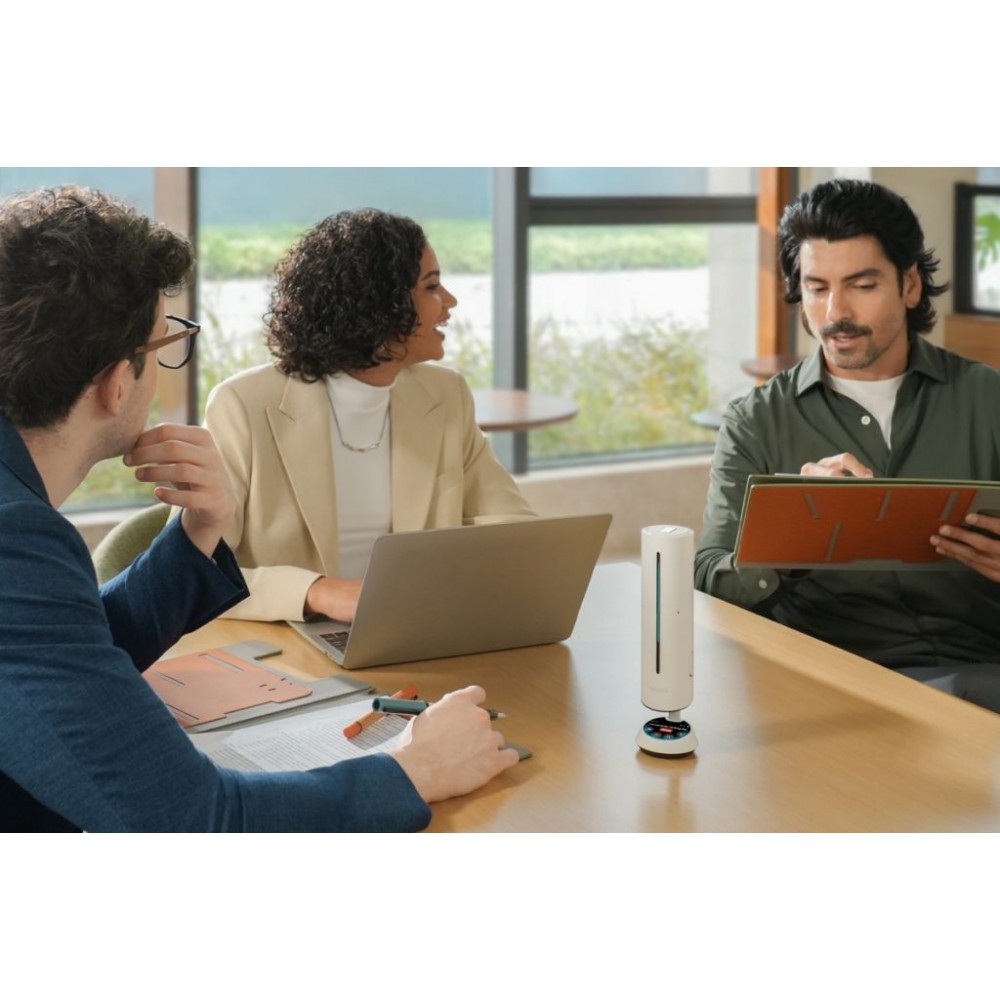 Zaawansowana technologia AI potrafi tłumić ponad 300 rodzajów hałasu, eliminować echo i zapewniać maksymalną zrozumiałość mowy. Wbudowana pamięć 32 GB umożliwia lokalne nagrywanie do 1000 godzin, a także oferuje automatyczną transkrypcję i podsumowania spotkań.